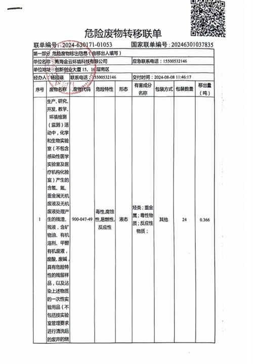 | 上一篇:危險(xiǎn)廢物轉(zhuǎn)移聯(lián)單 | 下一篇:金云科技時(shí)刻在行動(dòng) |