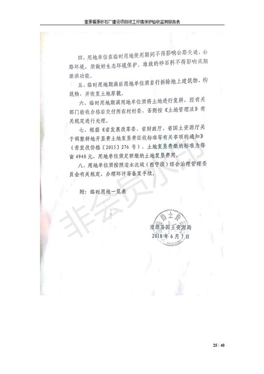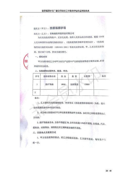 根據(jù)中華人民共和國(guó)國(guó)務(wù)院令第253號(hào)《建設(shè)項(xiàng)目環(huán)境保護(hù)管理?xiàng)l例》(中華人民共和國(guó)國(guó)務(wù)院令第682號(hào)《國(guó)務(wù)院關(guān)于修改〈建設(shè)項(xiàng)目環(huán)境保護(hù)管理?xiàng)l例〉的決定》和《建設(shè)項(xiàng)目竣工環(huán)境保護(hù)驗(yàn)收暫行辦法》,嚴(yán)格依照有關(guān)法律法規(guī),建設(shè)項(xiàng)目環(huán)境保護(hù)設(shè)施驗(yàn)收技術(shù)規(guī)范,本項(xiàng)目環(huán)評(píng)報(bào)告表和環(huán)保審批部門審批意見以及企業(yè)自行驗(yàn)收相關(guān)要求等對(duì)本項(xiàng)目進(jìn)行驗(yàn)收,本項(xiàng)目符合環(huán)保驗(yàn)收條件,可以通過環(huán)保驗(yàn)收。 湟源福砂廠建設(shè)項(xiàng)目竣工環(huán)境保護(hù)驗(yàn)收意見