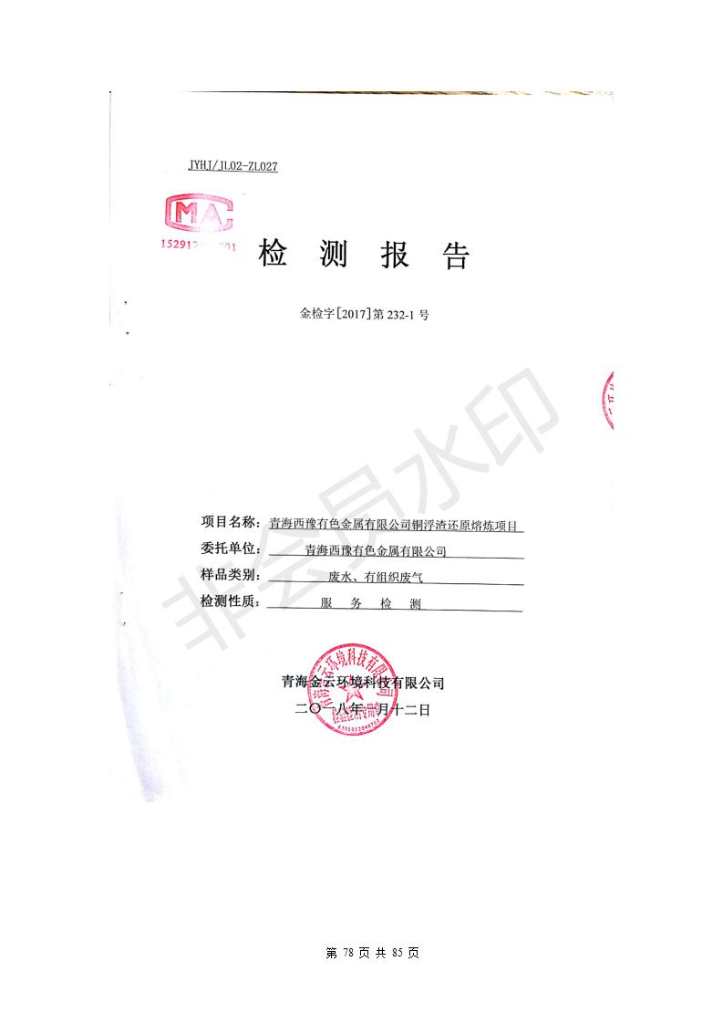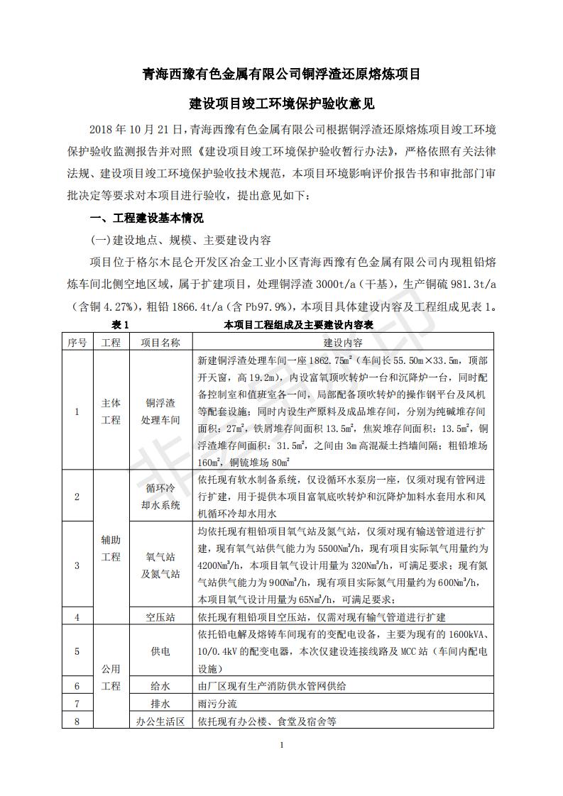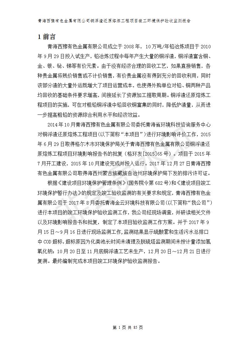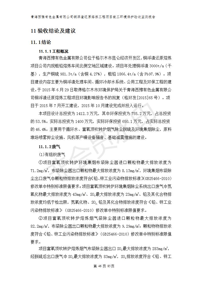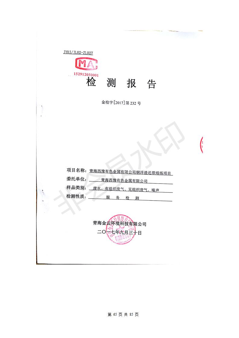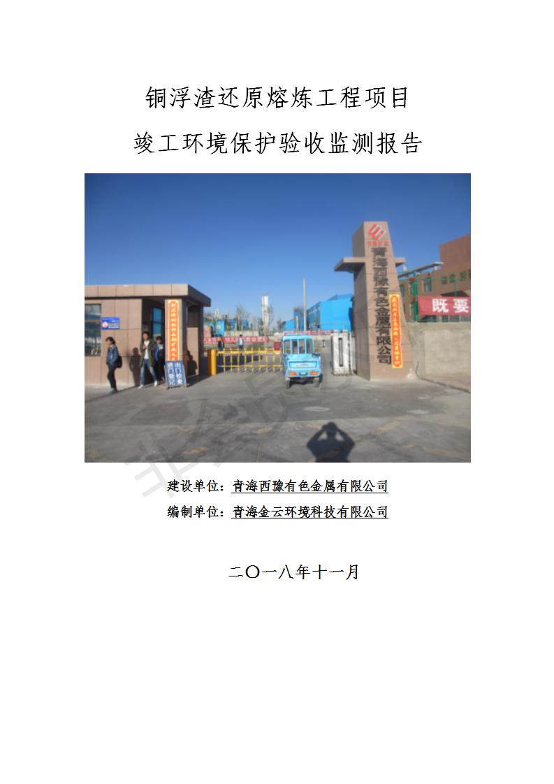 青海西豫有色金屬有限公司銅浮渣還原熔煉工程項目竣工環(huán)境保護驗收監(jiān)測報告公示發(fā)布日期:(2018-11-23) 點擊次數(shù):2787 |
