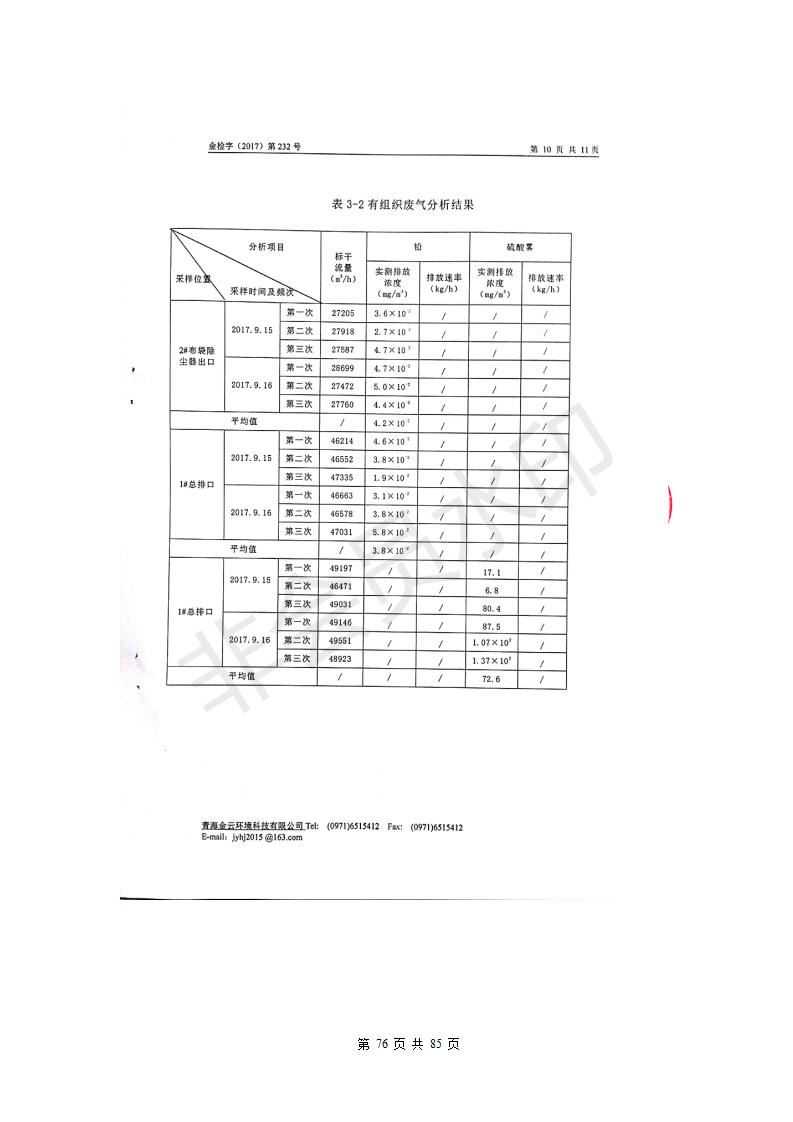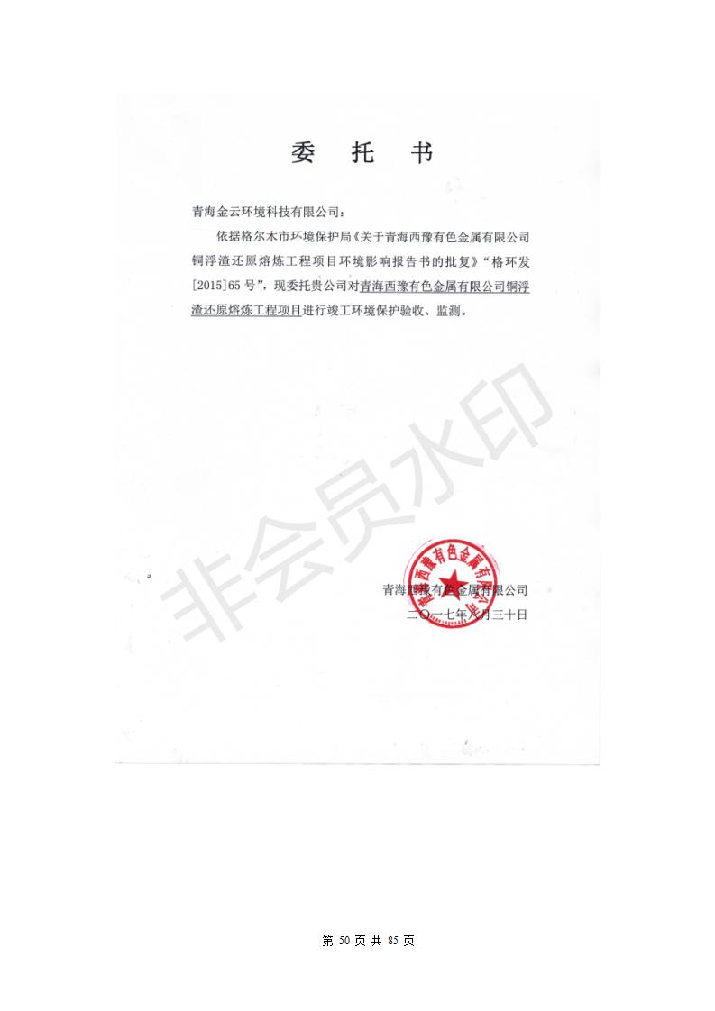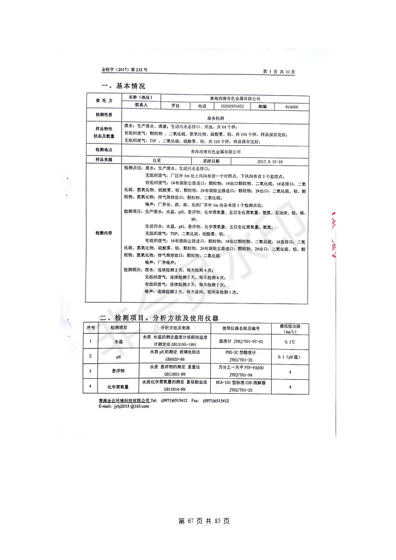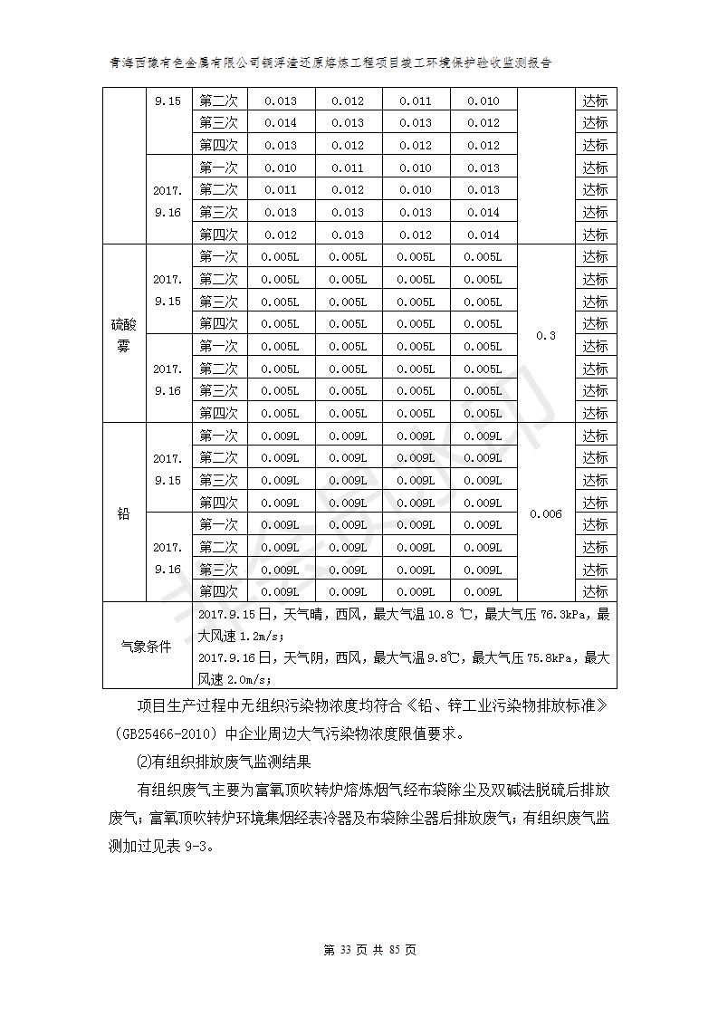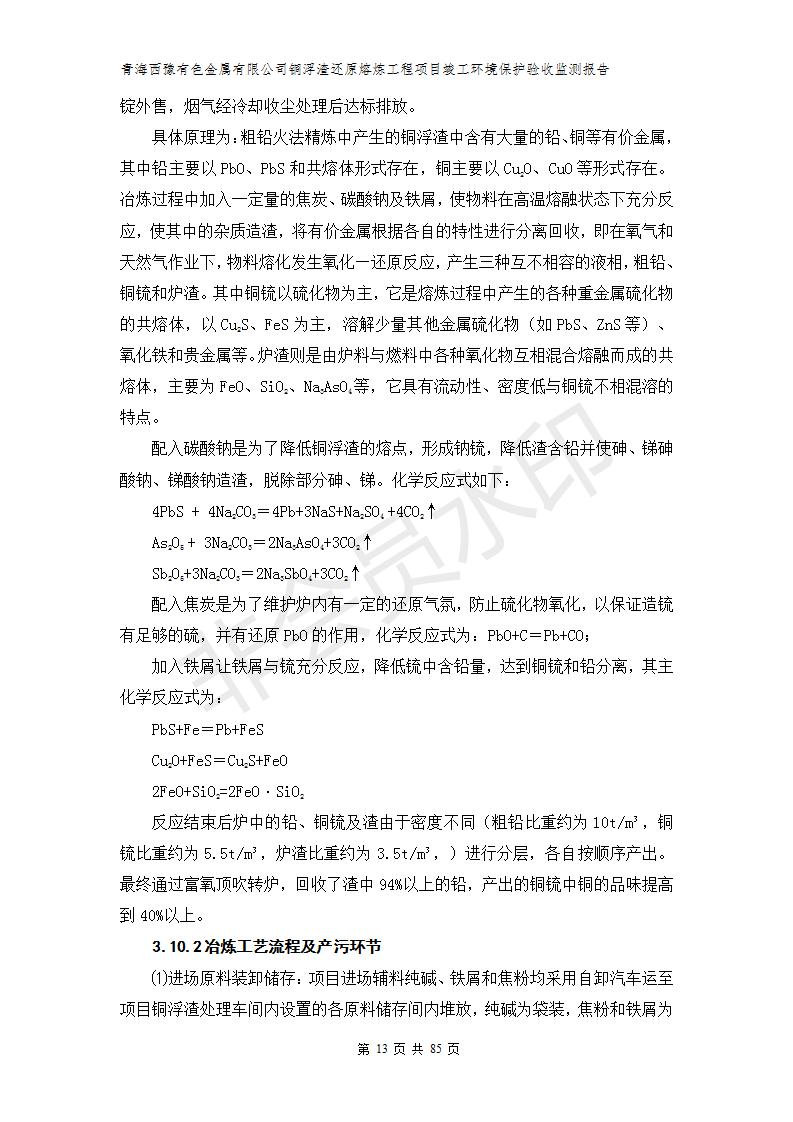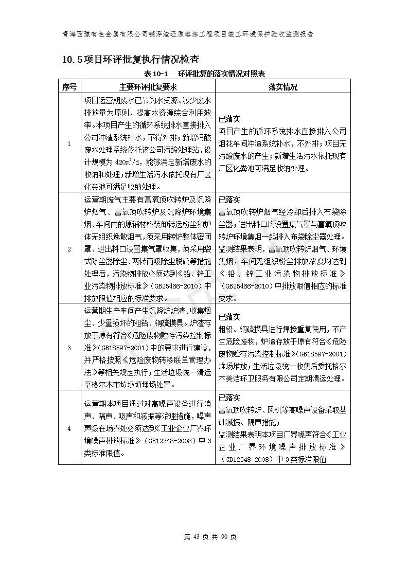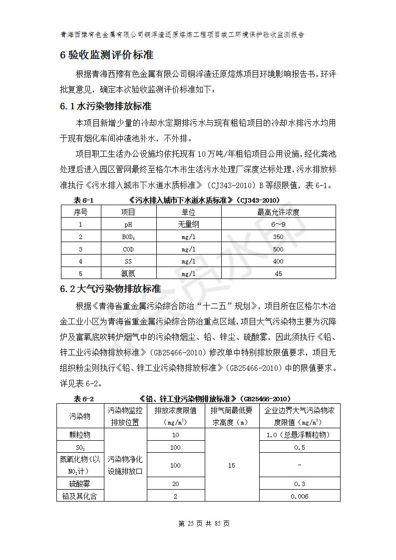 青海西豫有色金屬有限公司銅浮渣還原熔煉工程項目竣工環(huán)境保護驗收監(jiān)測報告公示發(fā)布日期:(2018-11-23) 點擊次數(shù):2787 |
