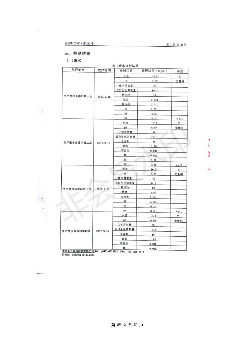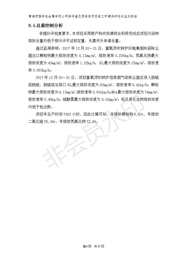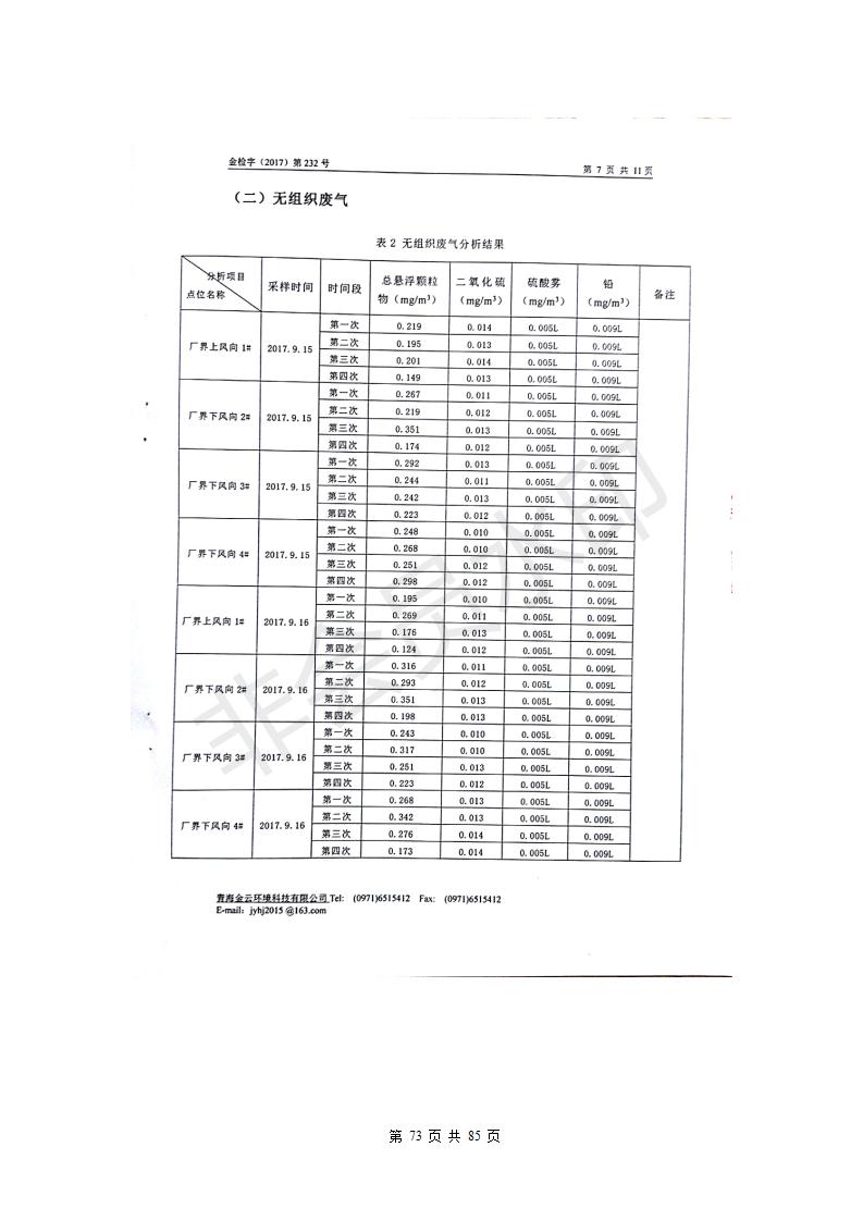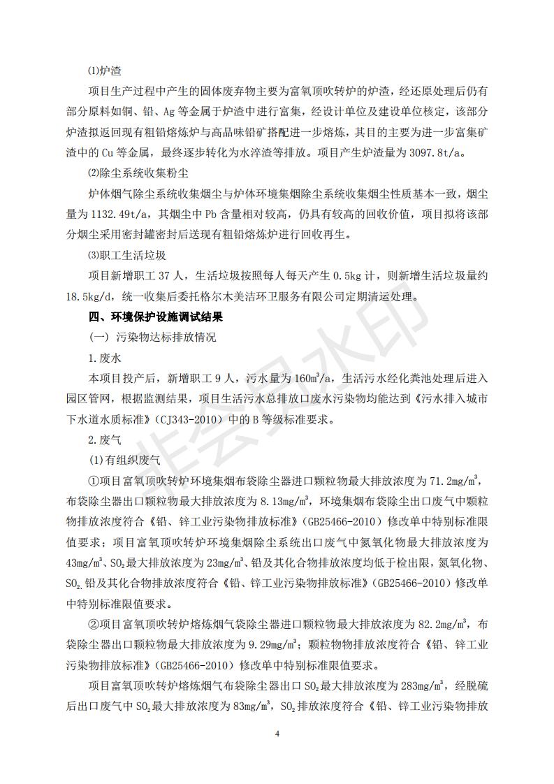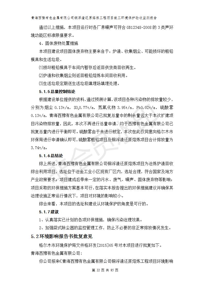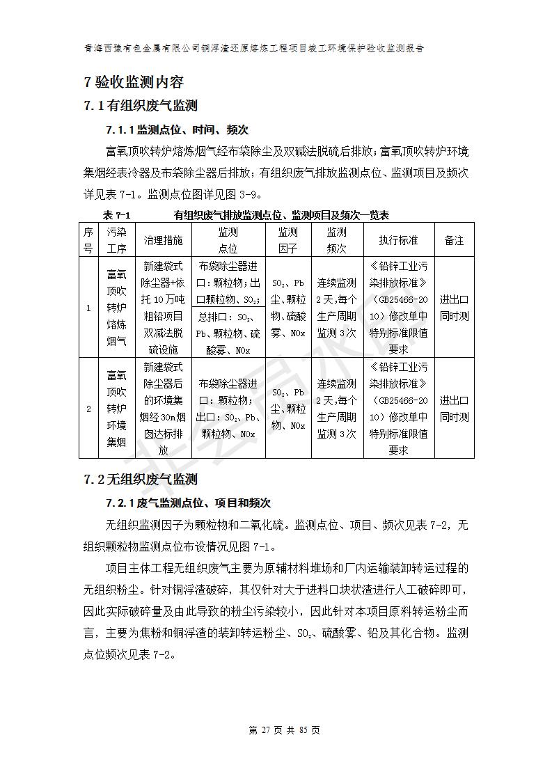 青海西豫有色金屬有限公司銅浮渣還原熔煉工程項目竣工環(huán)境保護驗收監(jiān)測報告公示發(fā)布日期:(2018-11-23) 點擊次數(shù):2787 |