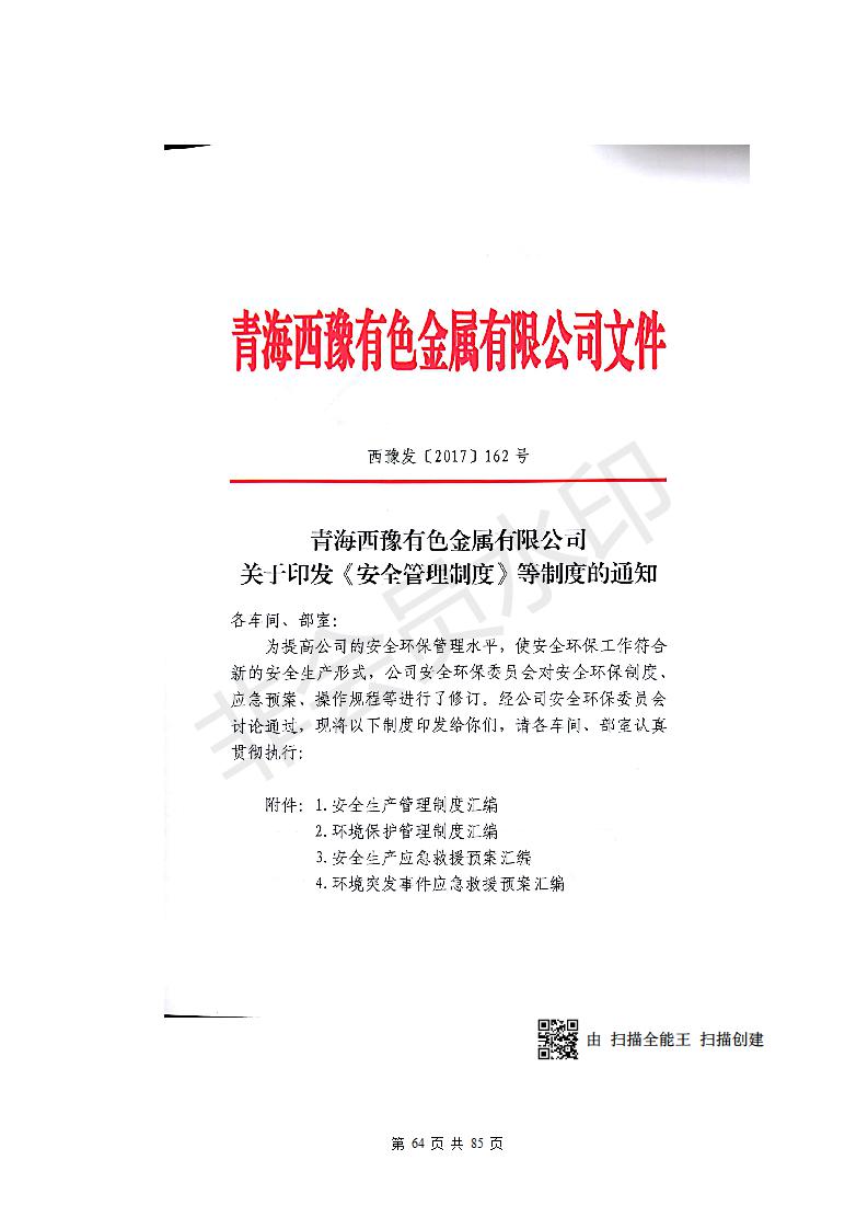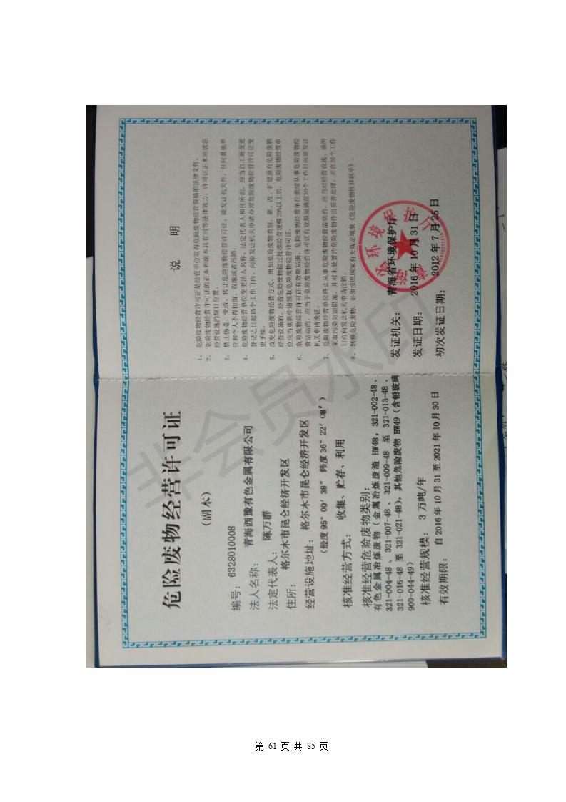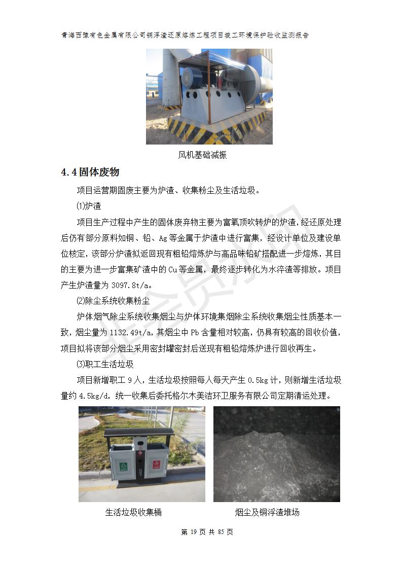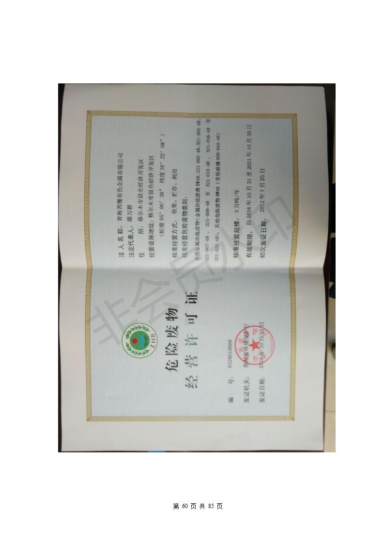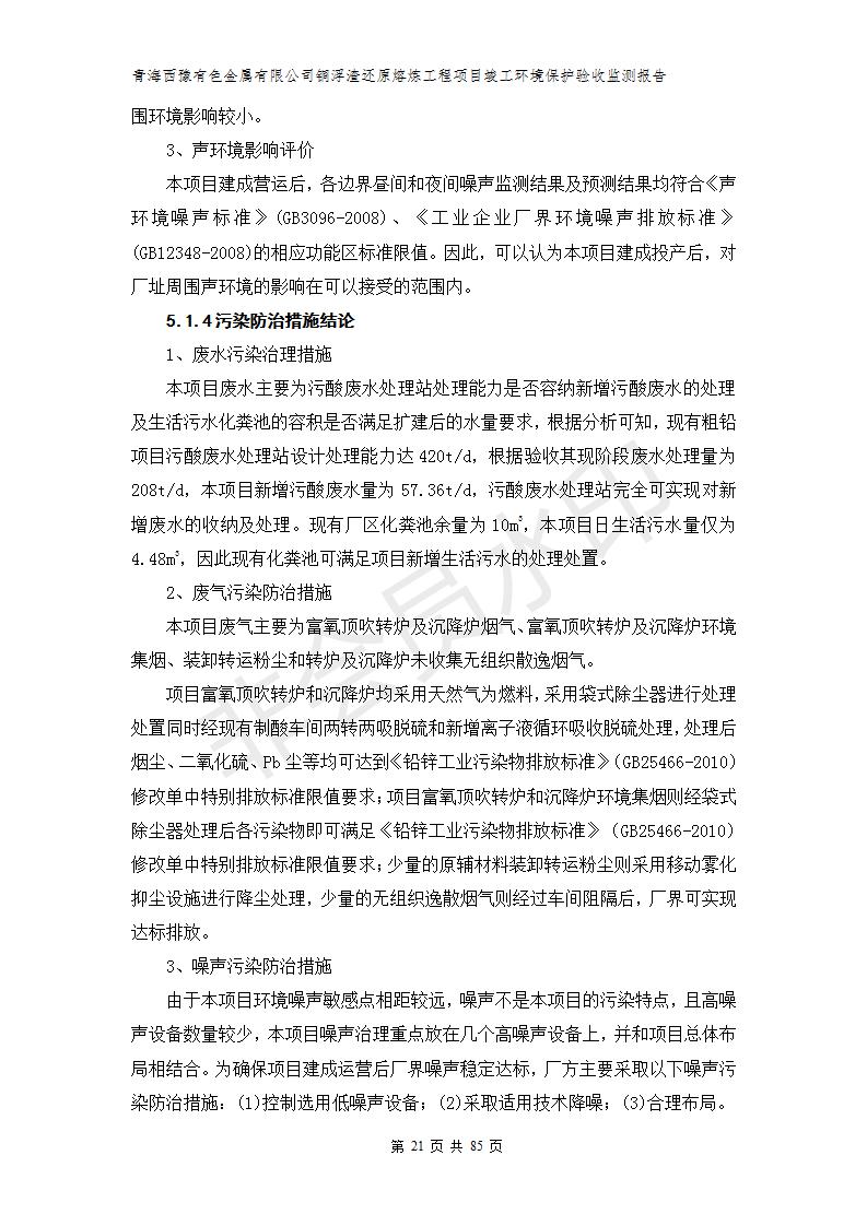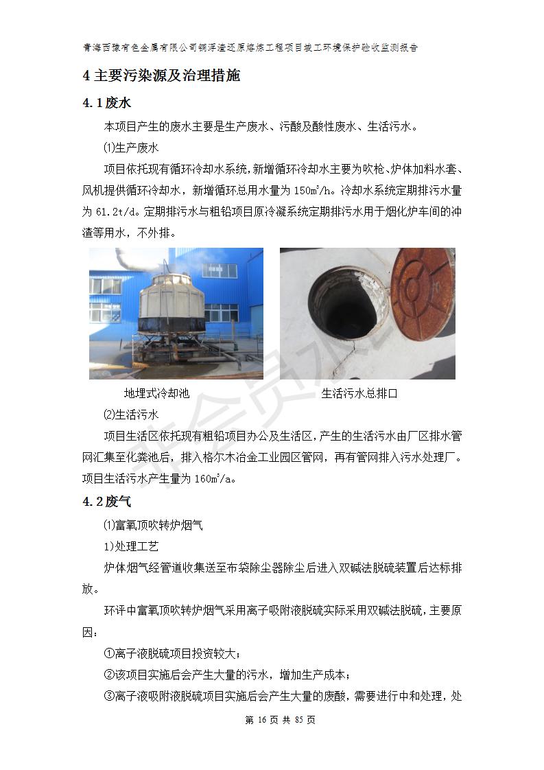 青海西豫有色金屬有限公司銅浮渣還原熔煉工程項目竣工環(huán)境保護驗收監(jiān)測報告公示發(fā)布日期:(2018-11-23) 點擊次數(shù):2787 |