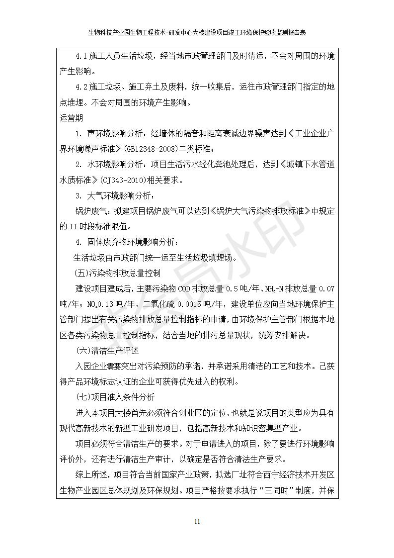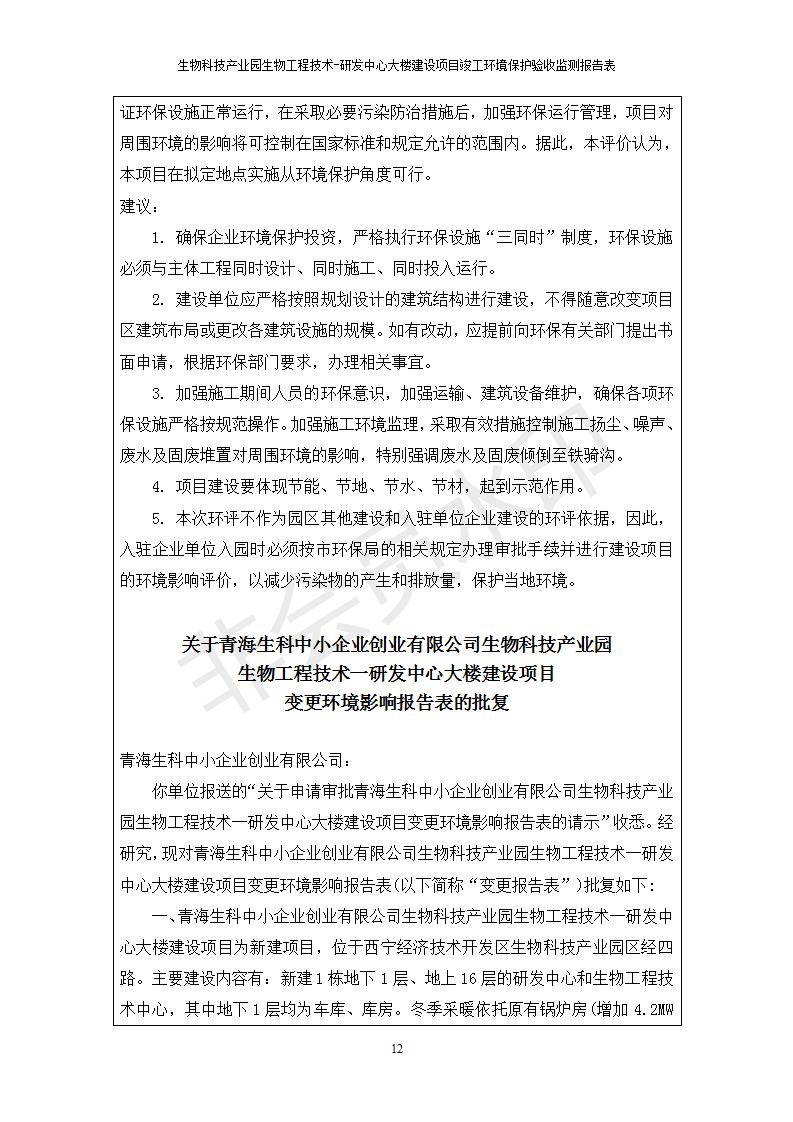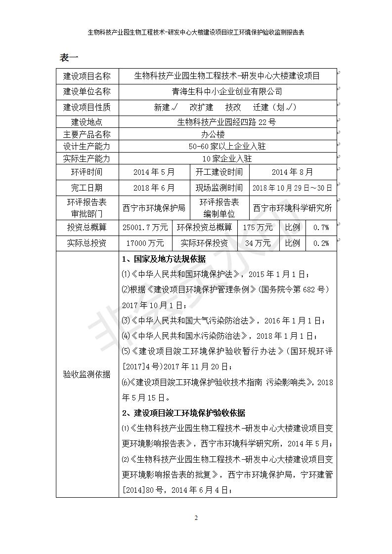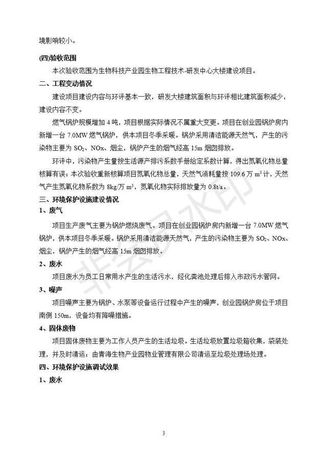 生物科技產(chǎn)業(yè)園生物工程技術(shù)-研發(fā)中心大樓建設(shè)項目竣工環(huán)境保護驗收監(jiān)測報告表公示