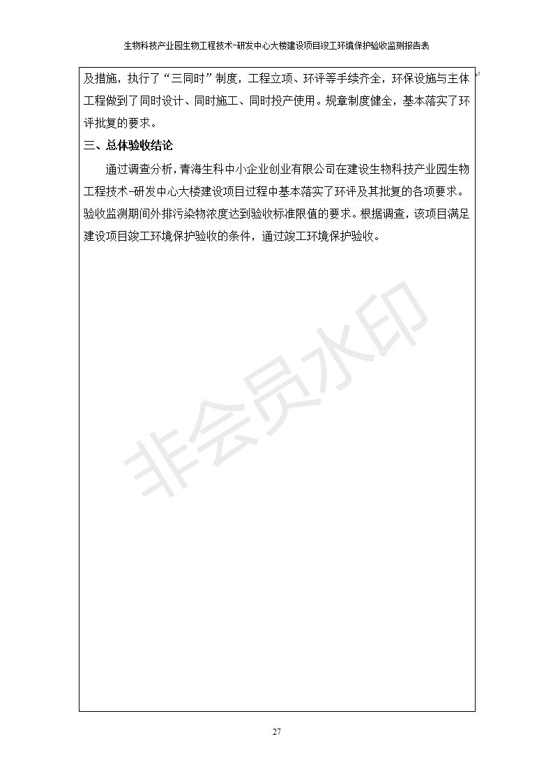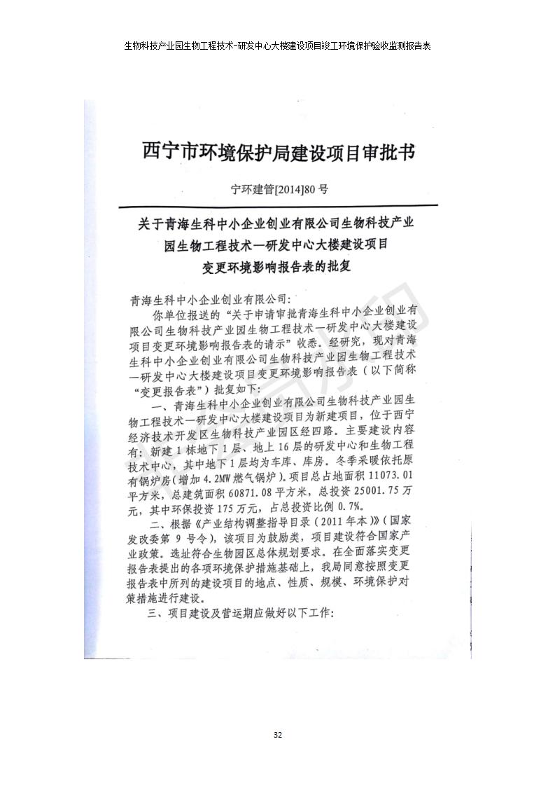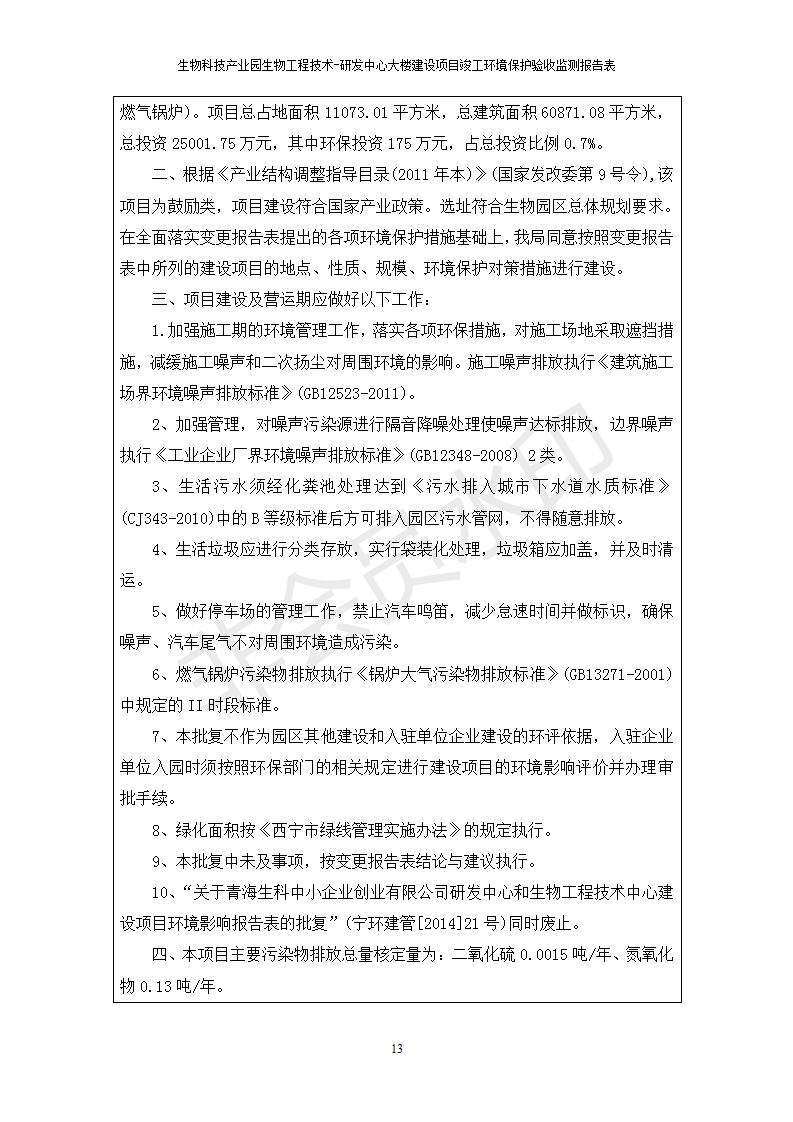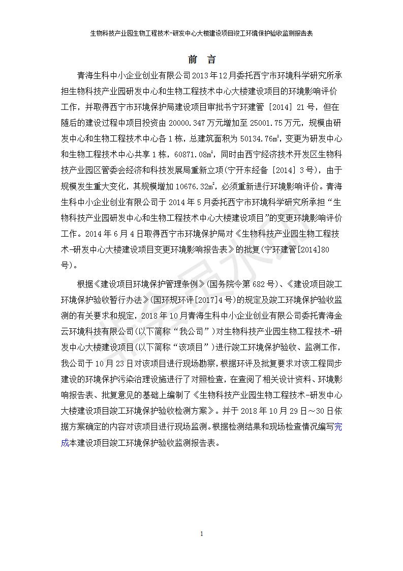 生物科技產(chǎn)業(yè)園生物工程技術(shù)-研發(fā)中心大樓建設(shè)項目竣工環(huán)境保護驗收監(jiān)測報告表公示