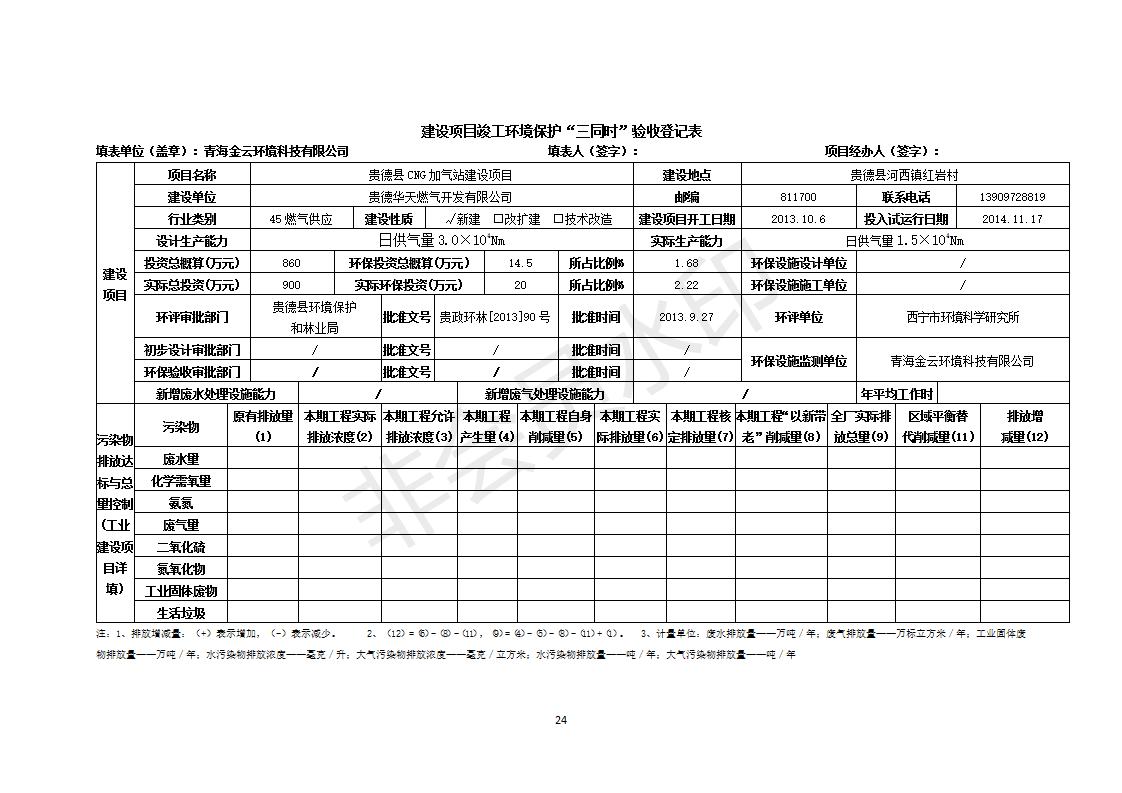 根據(jù)中華人民共和國(guó)務(wù)院令第682號(hào)《國(guó)務(wù)院關(guān)于修改〈建設(shè)項(xiàng)目環(huán)境保護(hù)管理?xiàng)l例〉的決定》和《建設(shè)項(xiàng)目竣工環(huán)境保護(hù)驗(yàn)收暫行辦法》(國(guó)務(wù)院令682號(hào)),青藏高原特色生物資源綠色開(kāi)發(fā)工程研究中心建設(shè)項(xiàng)目竣工環(huán)境保護(hù)驗(yàn)收內(nèi)容(包括竣工環(huán)境保護(hù)驗(yàn)收調(diào)查報(bào)告和驗(yàn)收意見(jiàn))公示如下: 一、項(xiàng)目名稱(chēng):貴德縣CNG加氣站建設(shè)項(xiàng)目 二、地點(diǎn):貴德縣河西鎮(zhèn)紅巖村 三、建設(shè)單位:貴德華天燃?xì)忾_(kāi)發(fā)有限公司 四、建設(shè)內(nèi)容:日供氣量為1.5×104Nm的加氣站 五、公示時(shí)間:二〇一九年五月二十九日至二〇一九年六月二十五日 六、聯(lián)系人:張工 公示期間,對(duì)上述公示內(nèi)容如有異議,請(qǐng)以書(shū)面形式反饋,個(gè)人須署真實(shí)姓名,單位須加蓋公章。