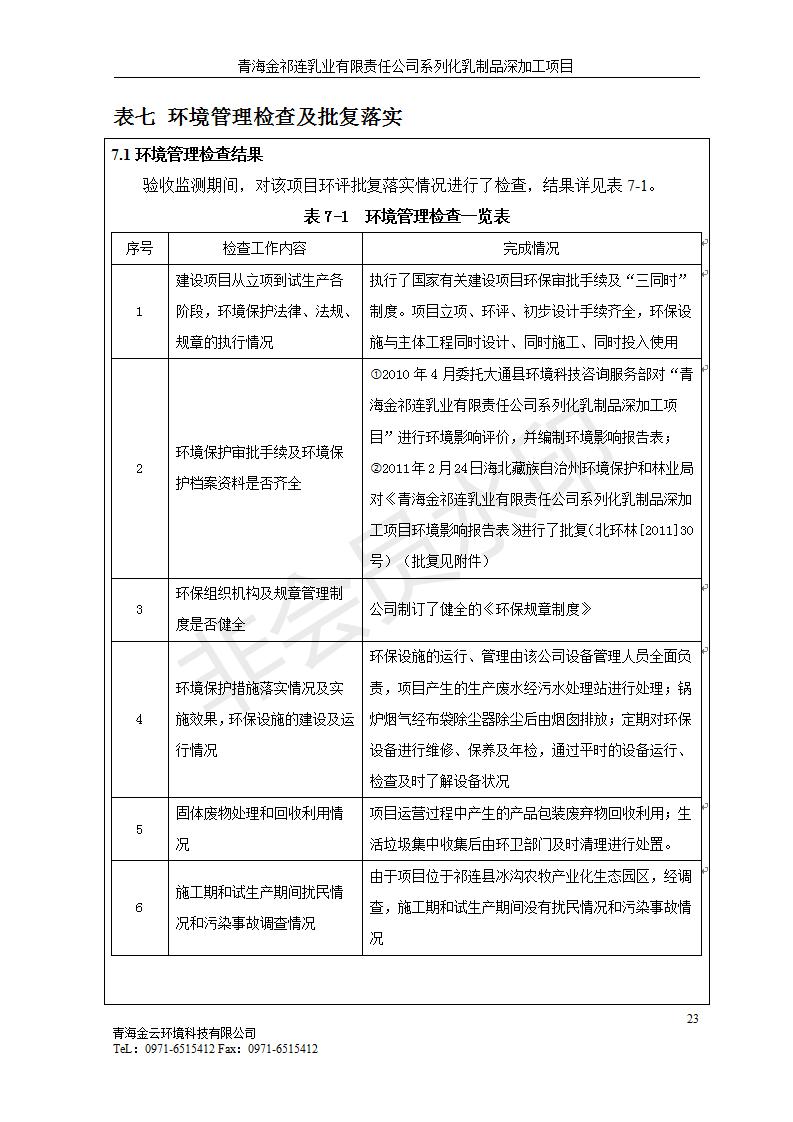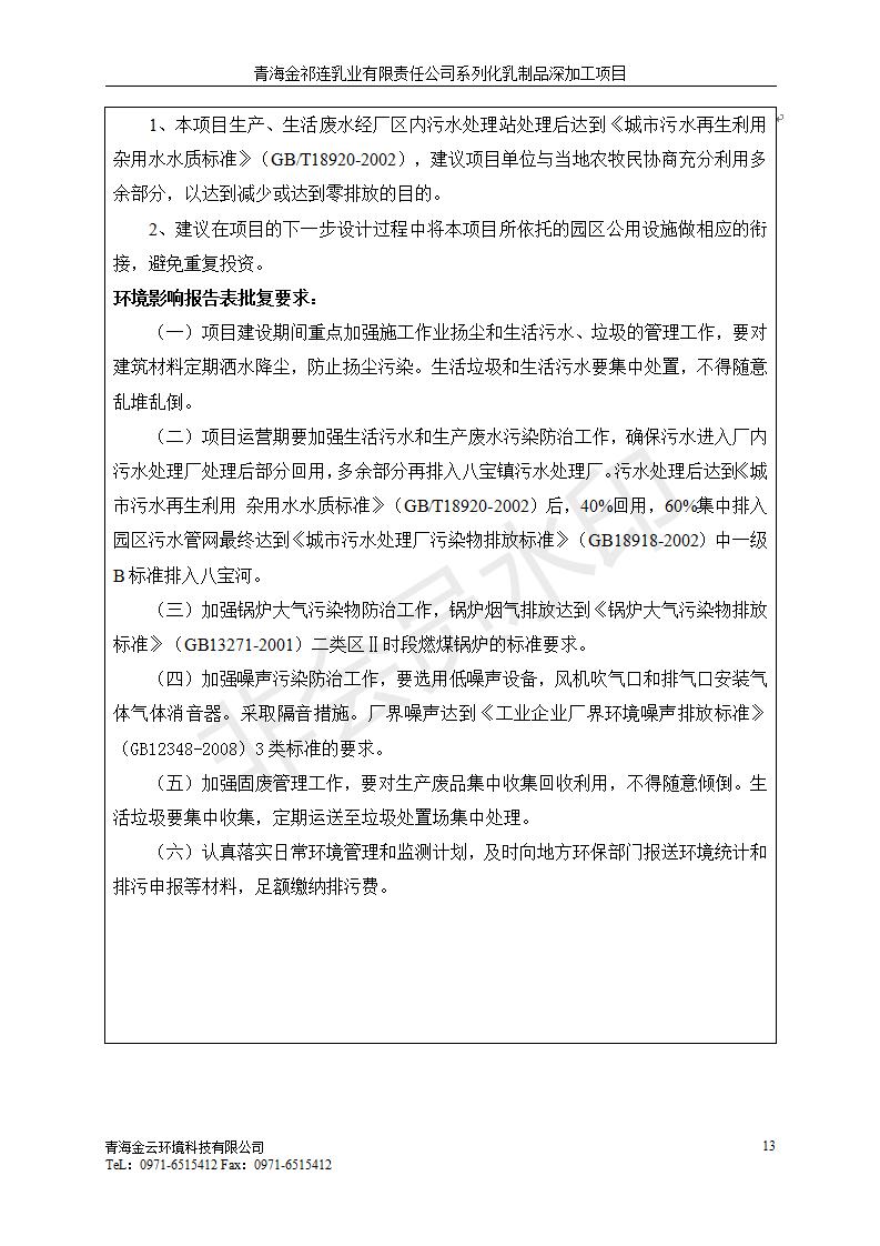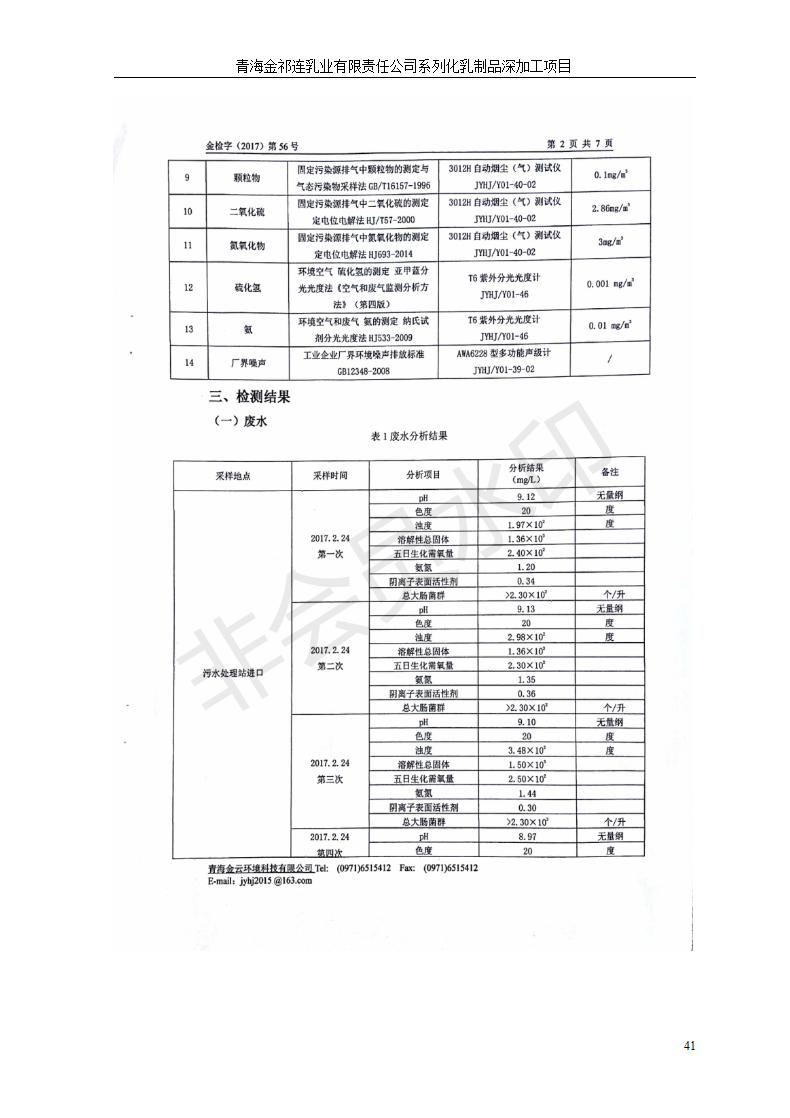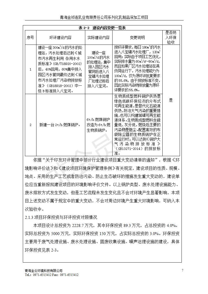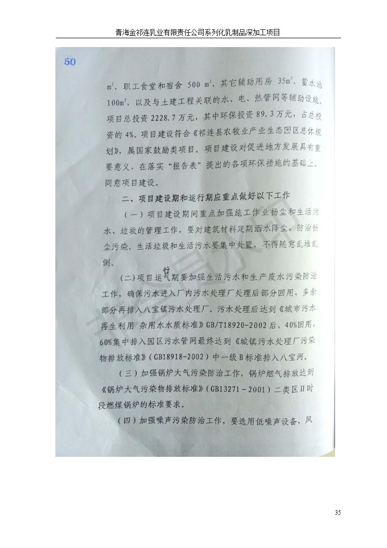 根據(jù)中華人民共和國國務(wù)院令第682號《國務(wù)院關(guān)于修改〈建設(shè)項(xiàng)目環(huán)境保護(hù)管理?xiàng)l例〉的決定》和《建設(shè)項(xiàng)目竣工環(huán)境保護(hù)驗(yàn)收暫行辦法》(國務(wù)院令682號),青海金祁連乳業(yè)有限責(zé)任公司系列化乳制品深加工項(xiàng)目(包括竣工環(huán)境保護(hù)驗(yàn)收監(jiān)測報(bào)告表和驗(yàn)收意見)公示如下。 一、項(xiàng)目名稱:青海金祁連乳業(yè)有限責(zé)任公司系列化乳制品深加工項(xiàng)目 二、地點(diǎn):海北藏族自治州祁連縣冰溝農(nóng)牧產(chǎn)業(yè)化生態(tài)園區(qū) 三、建設(shè)單位:青海金祁連乳業(yè)有限責(zé)任公司 四、建設(shè)內(nèi)容:本項(xiàng)目新征工業(yè)用地40畝,新建生產(chǎn)車間2200 m2、采用多聯(lián)跨鋼結(jié)構(gòu)廠房,跨度為24米,長度為80米,柱間距為6米,標(biāo)高為4.8米。廠房內(nèi)部根據(jù)產(chǎn)品生產(chǎn)工藝及工序要求分為不同的工作區(qū)域和車間辦公室。建設(shè)有保鮮冷庫800 m2、普通倉庫500m2、污水處理站房160 m2、鍋爐房和配電室159 m2、綜合辦公樓1200 m2、職工食堂和宿舍500 m2、其他輔助用房35 m2、蓄水池100 m2以及與土建工程相關(guān)聯(lián)的水、電、熱官網(wǎng)等輔助設(shè)施。 五、聯(lián)系人:張工 六、聯(lián)系電 話:0971-6515411 七、公示時(shí)間:二〇一九年七月十日至二〇一九年八月六日 公示期間,對上述公示內(nèi)容如有異議,請以書面形式反饋,個(gè)人須署真實(shí)姓名,單位須加蓋公章。