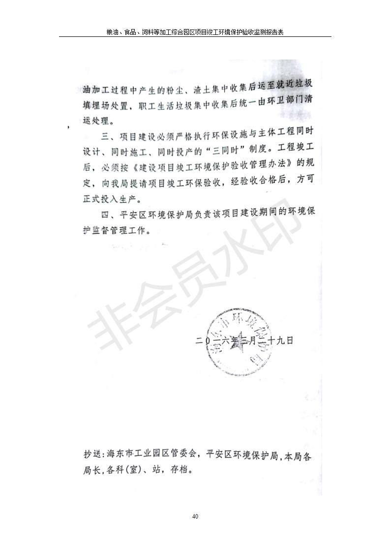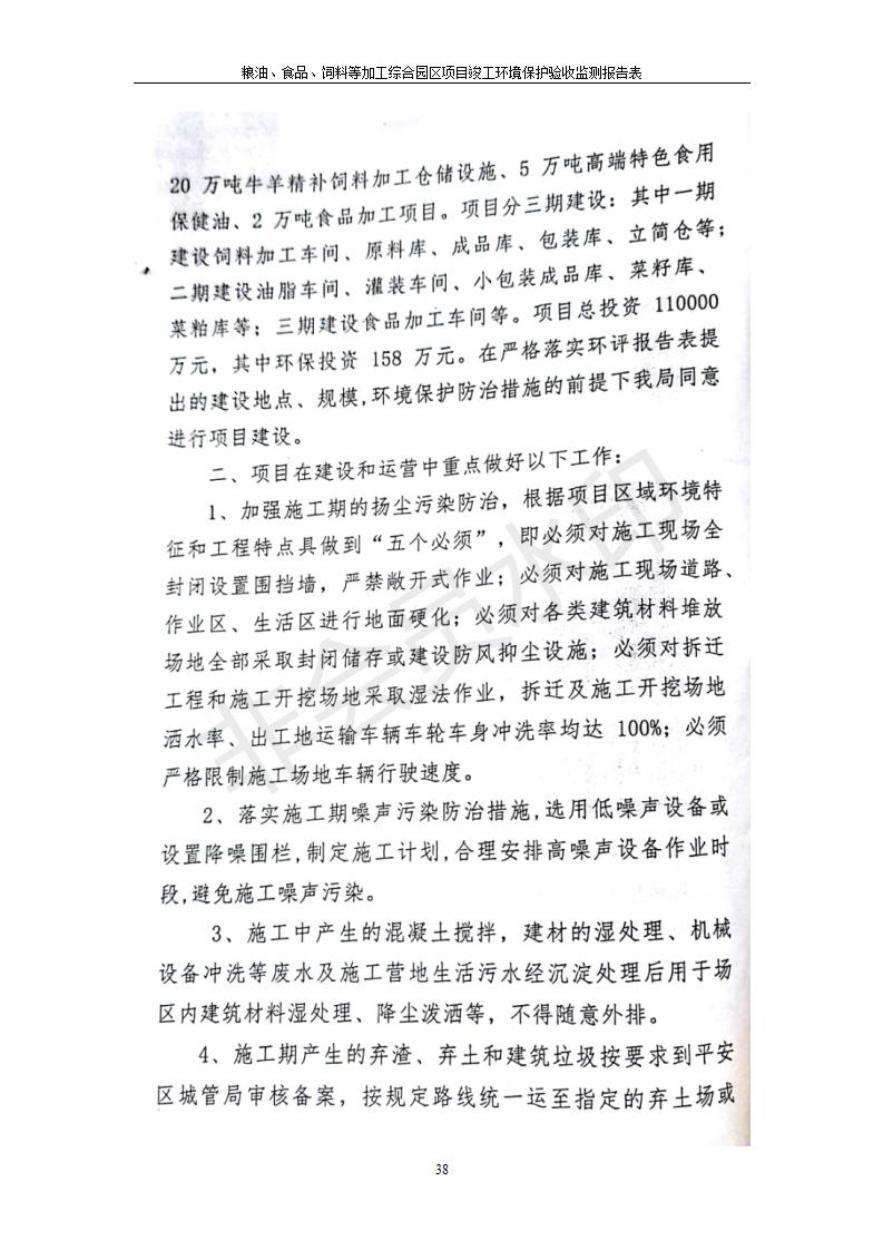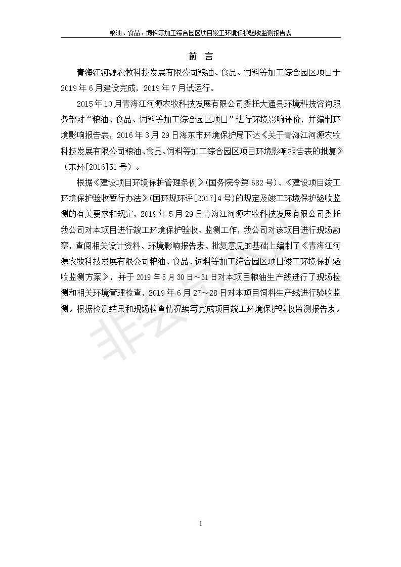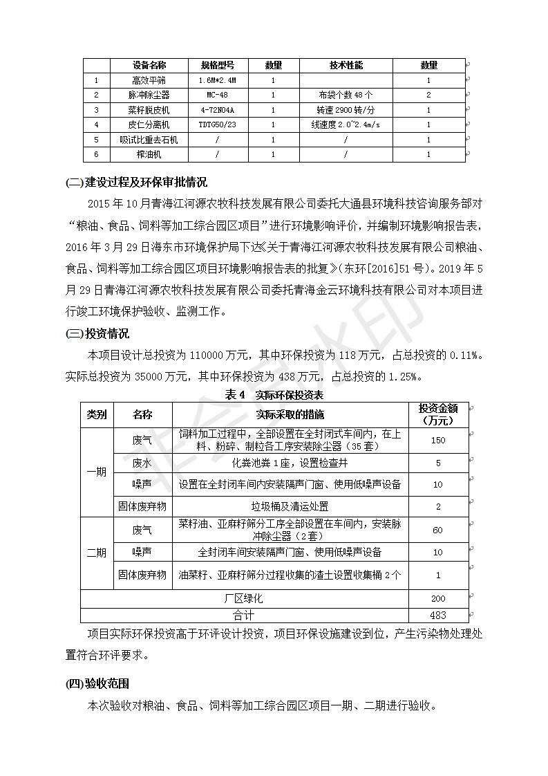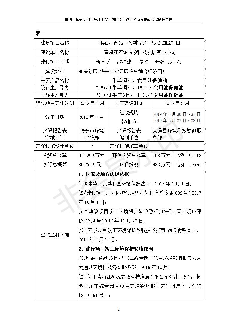 根據(jù)中華人民共和國(guó)國(guó)務(wù)院令第682號(hào)《國(guó)務(wù)院關(guān)于修改〈建設(shè)項(xiàng)目環(huán)境保護(hù)管理?xiàng)l例〉的決定》和《建設(shè)項(xiàng)目竣工環(huán)境保護(hù)驗(yàn)收暫行辦法》(國(guó)務(wù)院令682號(hào)),糧油、食品、飼料等加工綜合園區(qū)項(xiàng)目竣工環(huán)境保護(hù)驗(yàn)收監(jiān)測(cè)報(bào)告表(包括竣工環(huán)境保護(hù)驗(yàn)收監(jiān)測(cè)報(bào)告表和驗(yàn)收意見)公示如下。 一、項(xiàng)目名稱:糧油、食品、飼料等加工綜合園區(qū)項(xiàng)目 二、地點(diǎn):河湟新區(qū)(海東工業(yè)園區(qū)臨空綜合經(jīng)濟(jì)園) 六、聯(lián)系電話:0971-6515411 七、公示時(shí)間:二〇一九年十月九日至二〇一九年十一月五日 公示期間,對(duì)上述公示內(nèi)容如有異議,請(qǐng)以書面形式反饋,個(gè)人須署真實(shí)姓名,單位須加蓋公章。