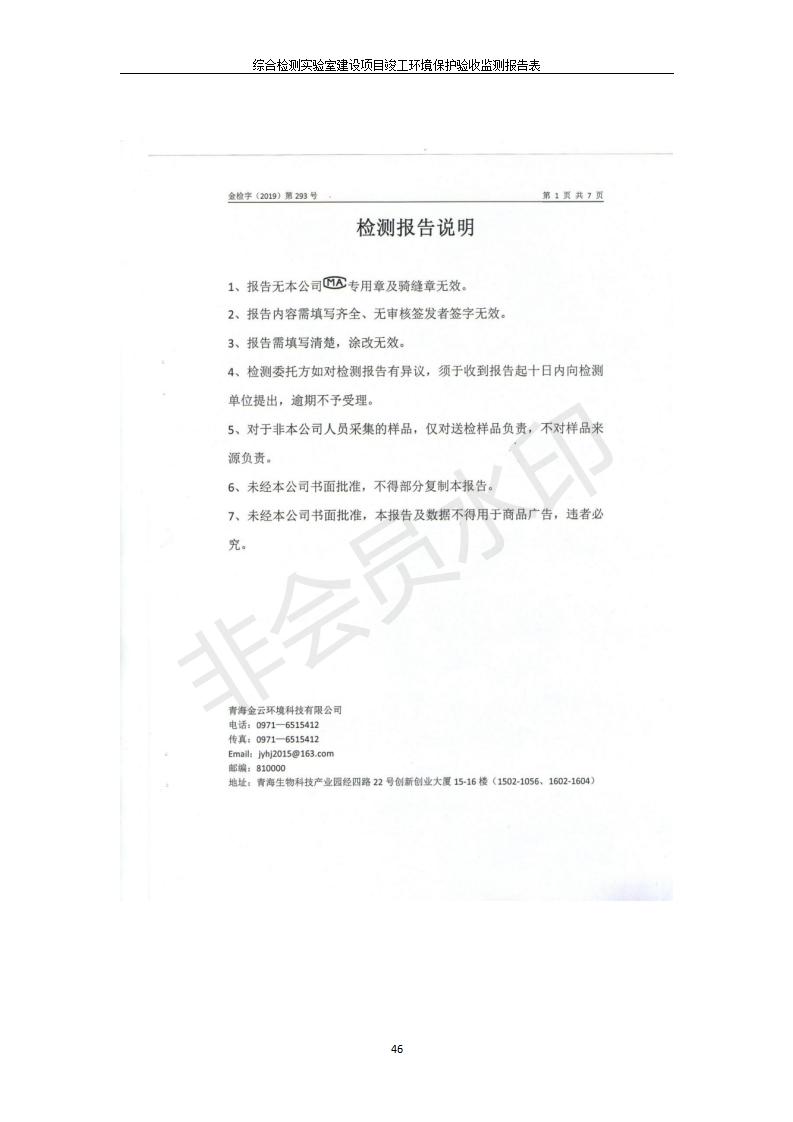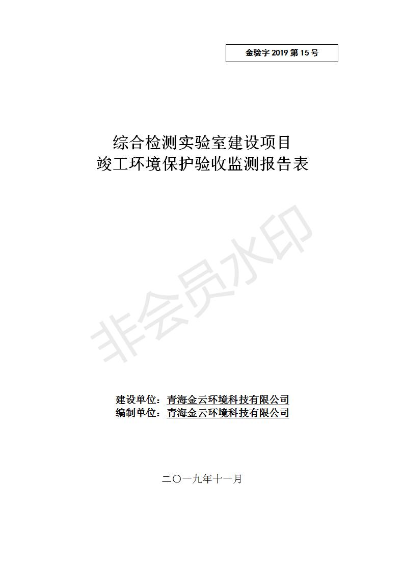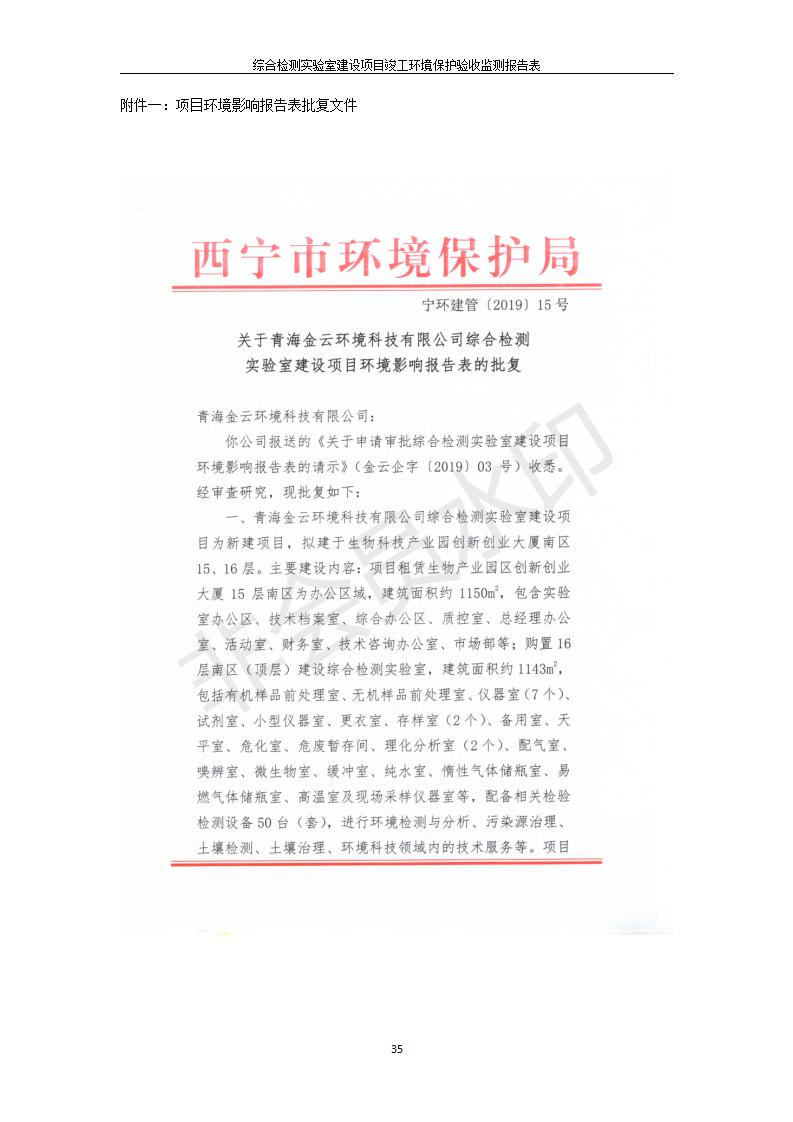 根據(jù)中華人民共和國(guó)國(guó)務(wù)院令第682號(hào)《國(guó)務(wù)院關(guān)于修改〈建設(shè)項(xiàng)目環(huán)境保護(hù)管理?xiàng)l例〉的決定》和《建設(shè)項(xiàng)目竣工環(huán)境保護(hù)驗(yàn)收暫行辦法》(國(guó)務(wù)院令682號(hào)),綜合檢測(cè)實(shí)驗(yàn)室建設(shè)項(xiàng)目(包括竣工環(huán)境保護(hù)驗(yàn)收監(jiān)測(cè)報(bào)告表和驗(yàn)收意見(jiàn))公示如下。 一、項(xiàng)目名稱:綜合檢測(cè)實(shí)驗(yàn)室建設(shè)項(xiàng)目 二、地點(diǎn):西寧市經(jīng)濟(jì)技術(shù)開(kāi)發(fā)區(qū)生物科技產(chǎn)業(yè)園區(qū)創(chuàng)新創(chuàng)業(yè)大廈南區(qū)15、16層 六、聯(lián)系電話:0971-6515411 七、公示時(shí)間:二〇一九年十一月十九日至二〇一九年十二月十六日 公示期間,對(duì)上述公示內(nèi)容如有異議,請(qǐng)以書面形式反饋,個(gè)人須署真實(shí)姓名,單位須加蓋公章。