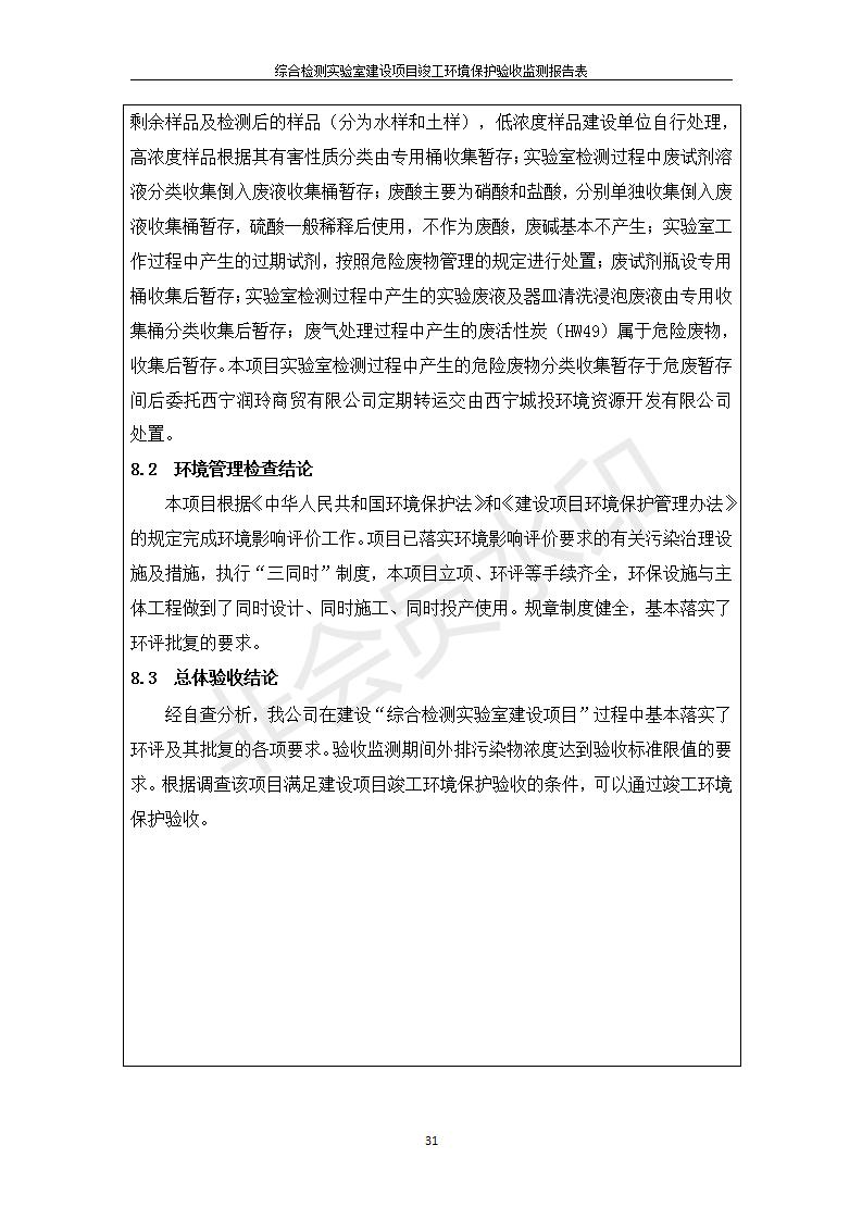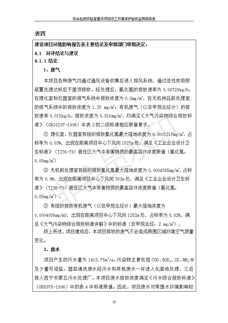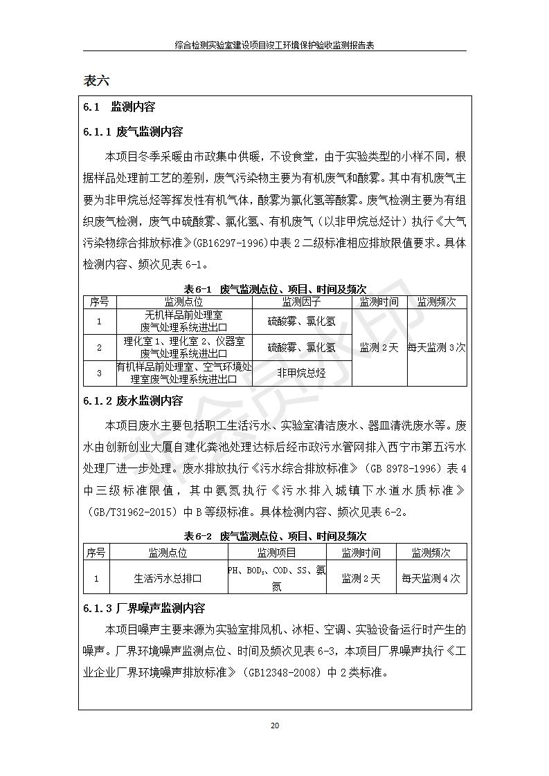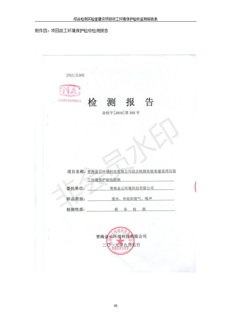 根據(jù)中華人民共和國(guó)國(guó)務(wù)院令第682號(hào)《國(guó)務(wù)院關(guān)于修改〈建設(shè)項(xiàng)目環(huán)境保護(hù)管理?xiàng)l例〉的決定》和《建設(shè)項(xiàng)目竣工環(huán)境保護(hù)驗(yàn)收暫行辦法》(國(guó)務(wù)院令682號(hào)),綜合檢測(cè)實(shí)驗(yàn)室建設(shè)項(xiàng)目(包括竣工環(huán)境保護(hù)驗(yàn)收監(jiān)測(cè)報(bào)告表和驗(yàn)收意見(jiàn))公示如下。 一、項(xiàng)目名稱:綜合檢測(cè)實(shí)驗(yàn)室建設(shè)項(xiàng)目 二、地點(diǎn):西寧市經(jīng)濟(jì)技術(shù)開(kāi)發(fā)區(qū)生物科技產(chǎn)業(yè)園區(qū)創(chuàng)新創(chuàng)業(yè)大廈南區(qū)15、16層 六、聯(lián)系電話:0971-6515411 七、公示時(shí)間:二〇一九年十一月十九日至二〇一九年十二月十六日 公示期間,對(duì)上述公示內(nèi)容如有異議,請(qǐng)以書面形式反饋,個(gè)人須署真實(shí)姓名,單位須加蓋公章。