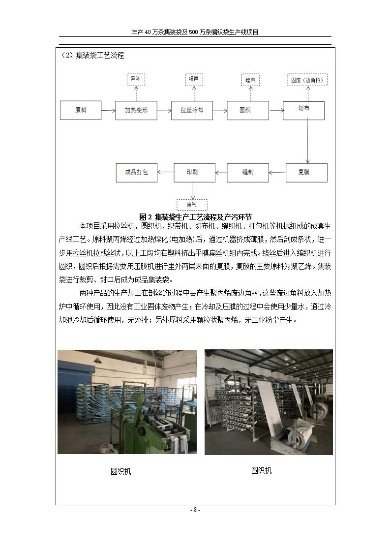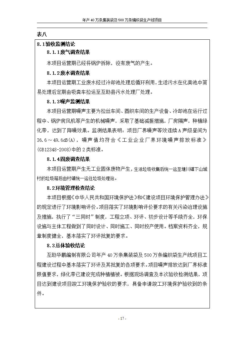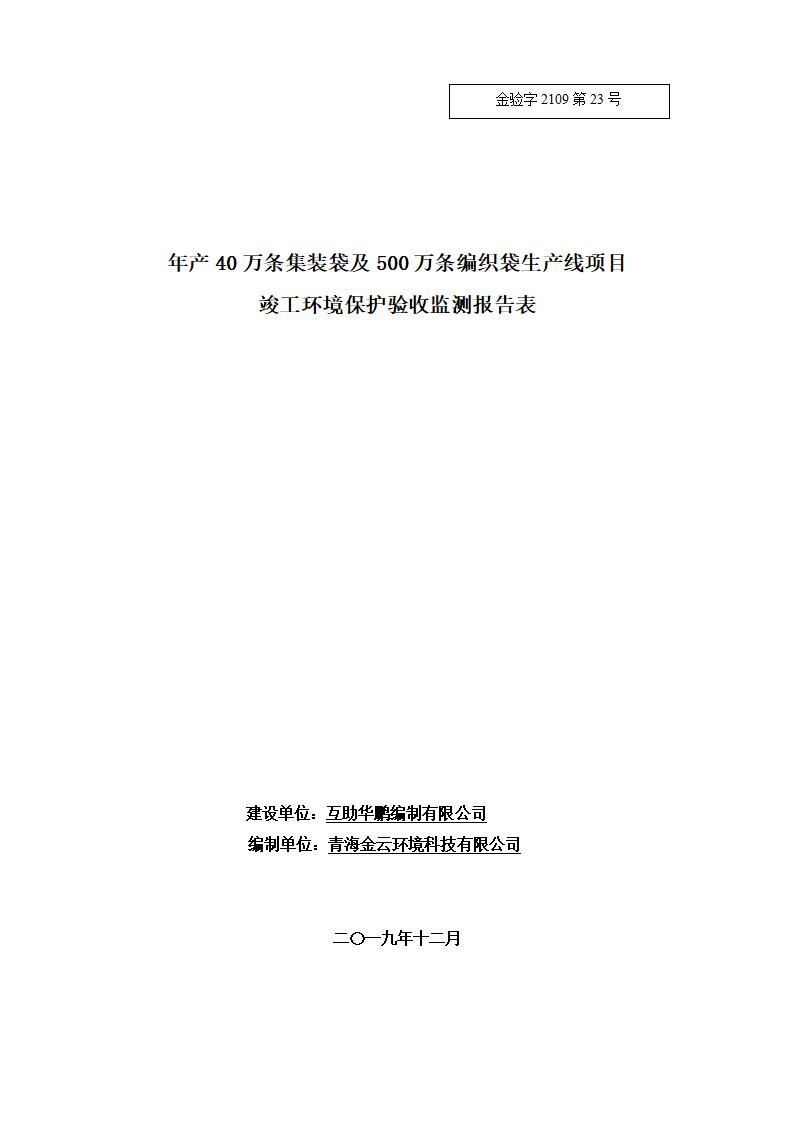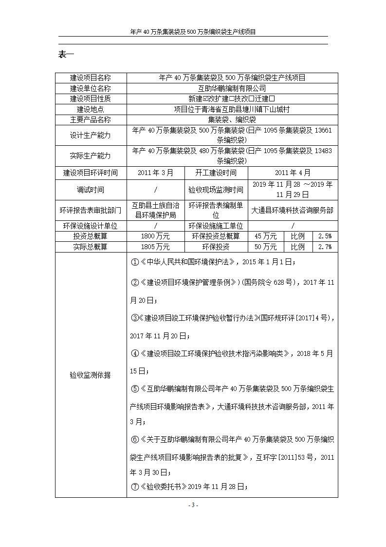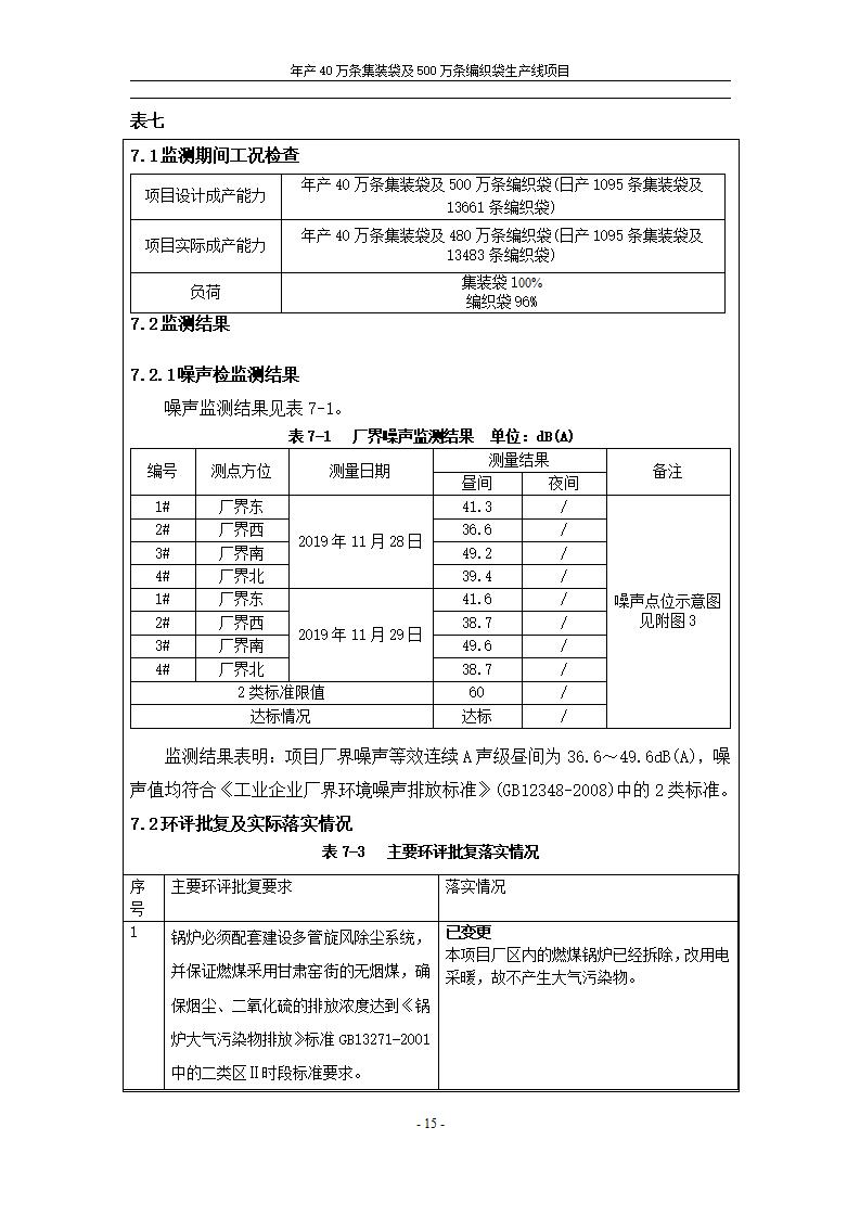 年產(chǎn)40萬條集裝袋及500萬條編織袋生產(chǎn)線項(xiàng)目竣工環(huán)境保護(hù)驗(yàn)收監(jiān)測報(bào)告表公示發(fā)布日期:(2020-1-13) 點(diǎn)擊次數(shù):2697 |