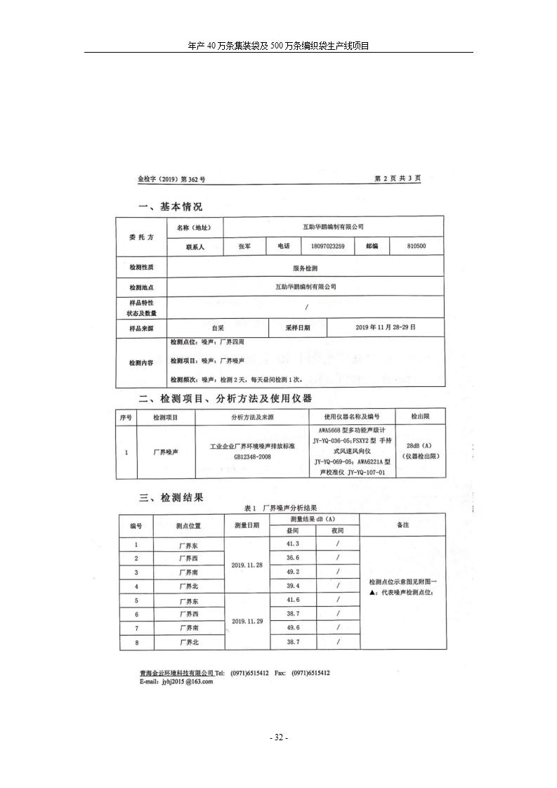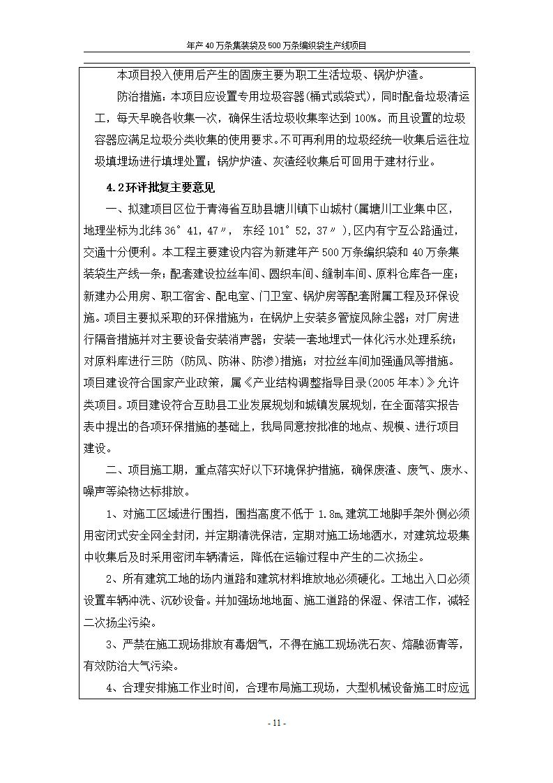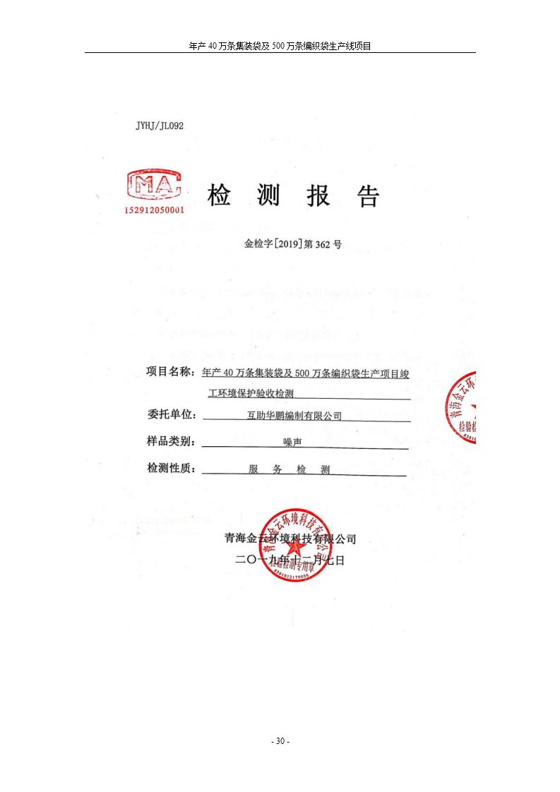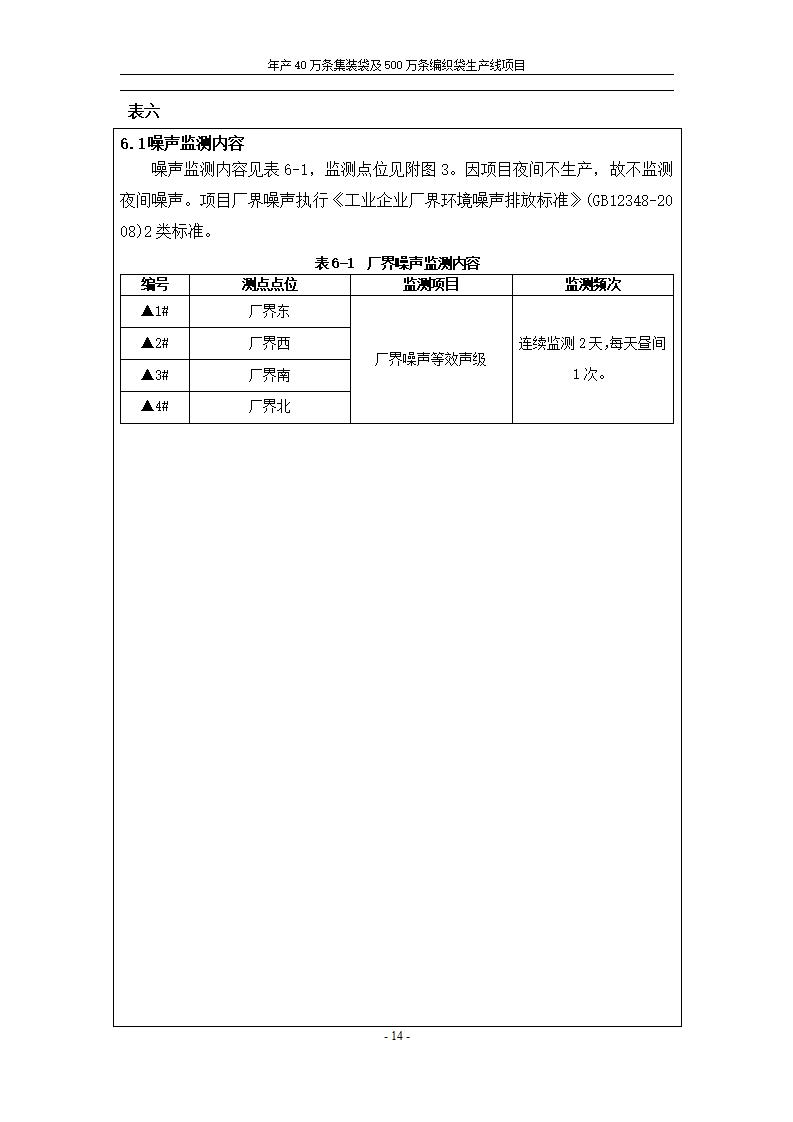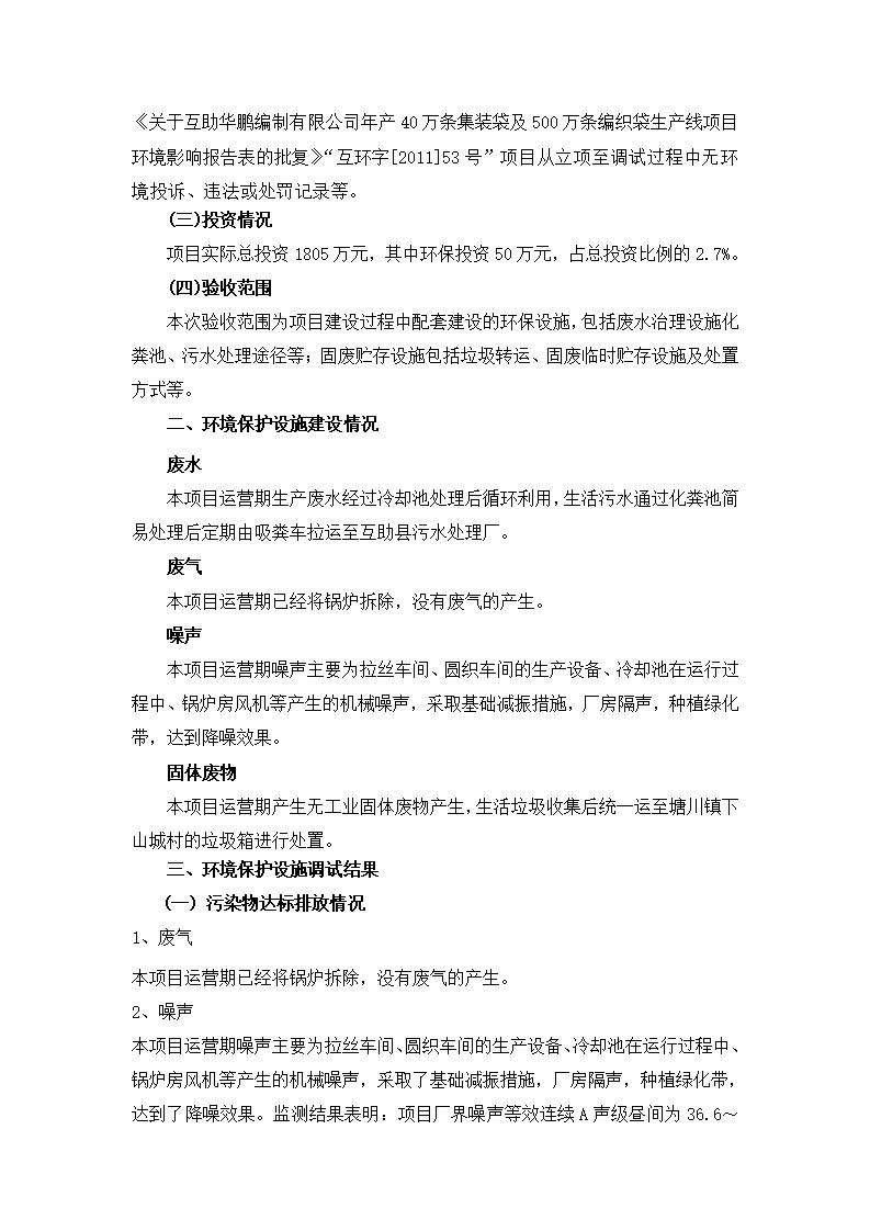 年產(chǎn)40萬條集裝袋及500萬條編織袋生產(chǎn)線項(xiàng)目竣工環(huán)境保護(hù)驗(yàn)收監(jiān)測報(bào)告表公示發(fā)布日期:(2020-1-13) 點(diǎn)擊次數(shù):2697 |