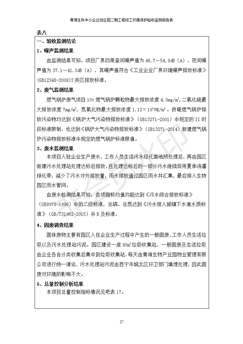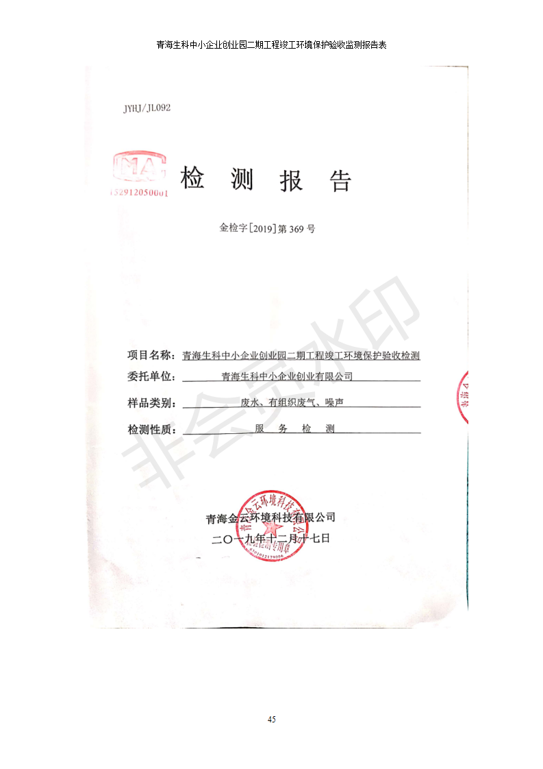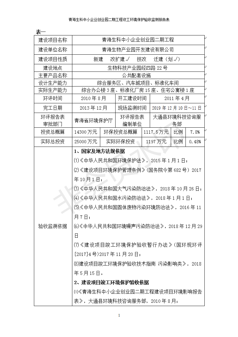 青海生科中小企業(yè)創(chuàng)業(yè)園二期工程建設(shè)項(xiàng)目竣工環(huán)境保護(hù)驗(yàn)收檢測報(bào)告表公示發(fā)布日期:(2020-2-1) 點(diǎn)擊次數(shù):2525 |