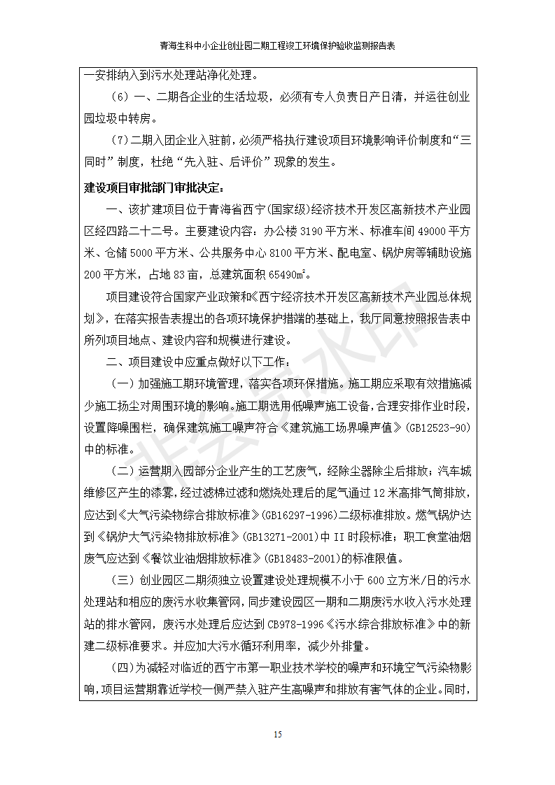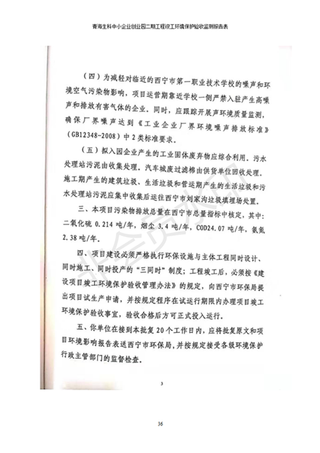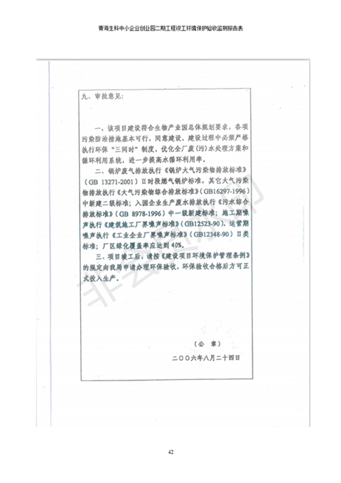 據(jù)中華人民共和國國務(wù)院令第682號《國務(wù)院關(guān)于修改〈建設(shè)項(xiàng)目環(huán)境保護(hù)管理?xiàng)l例〉的決定》和《建設(shè)項(xiàng)目竣工環(huán)境保護(hù)驗(yàn)收暫行辦法》(國務(wù)院令682號),青海生科中小企業(yè)創(chuàng)業(yè)園二期工程建設(shè)項(xiàng)目(包括竣工環(huán)境保護(hù)驗(yàn)收監(jiān)測報(bào)告表和驗(yàn)收意見)公示如下。 一、項(xiàng)目名稱:青海生科中小企業(yè)創(chuàng)業(yè)園二期工程建設(shè)項(xiàng)目 二、地點(diǎn):西寧市生物園區(qū)經(jīng)四路26號 五、聯(lián)系人:張憲周 六、聯(lián)系電話:13997290897 七、公示時間:二〇二〇年二月三日至二〇二〇年二月二十八日 公示期間,對上述公示內(nèi)容如有異議,請以書面形式反饋,個人須署真實(shí)姓名,單位須加蓋公章。
