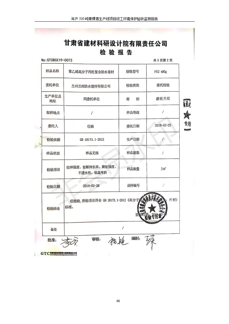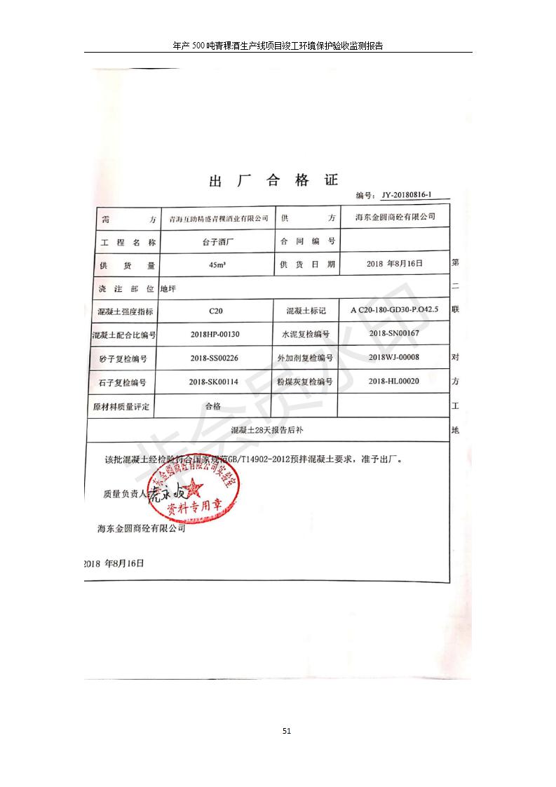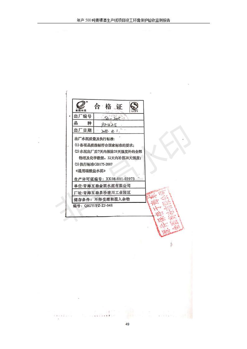 青;ブ⑶囡茦I(yè)有限公司年產(chǎn)500噸青稞酒業(yè)生產(chǎn)線建設(shè)項(xiàng)目竣工環(huán)境保護(hù)驗(yàn)收監(jiān)測報(bào)告表公示發(fā)布日期:(2020-4-27) 點(diǎn)擊次數(shù):2686 |