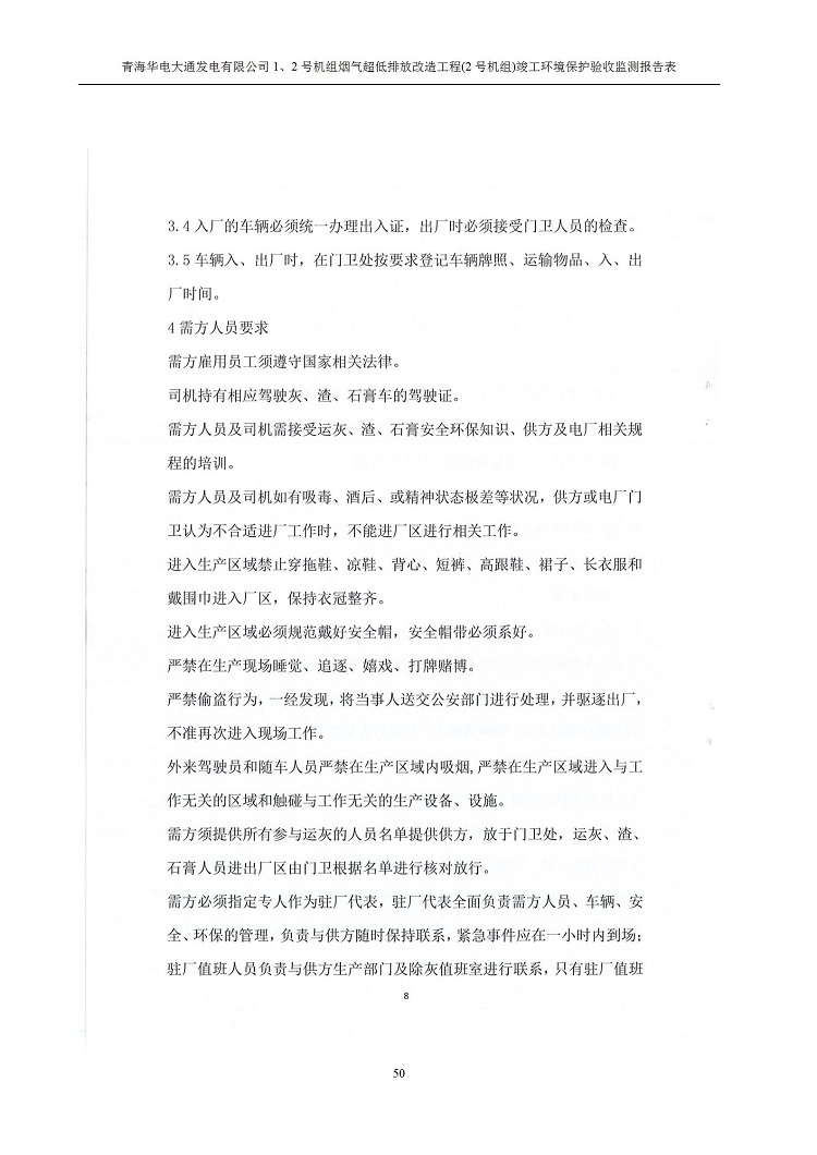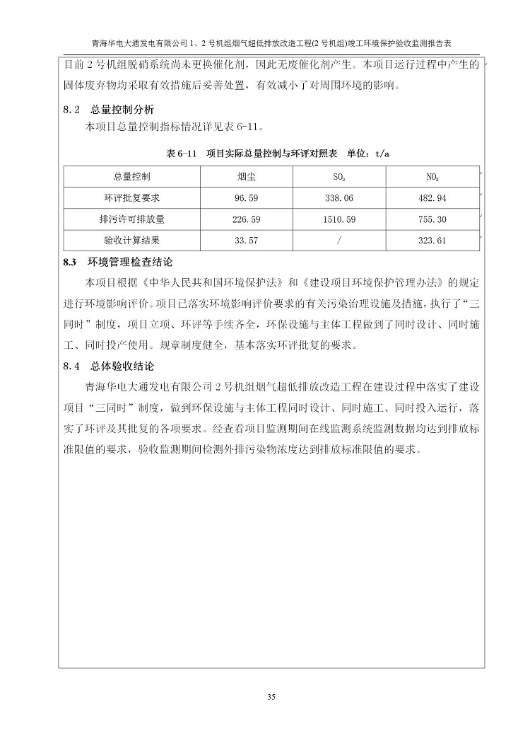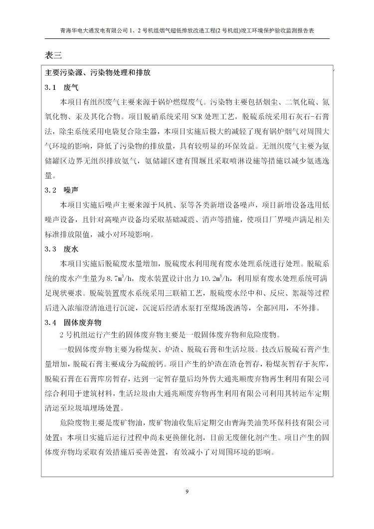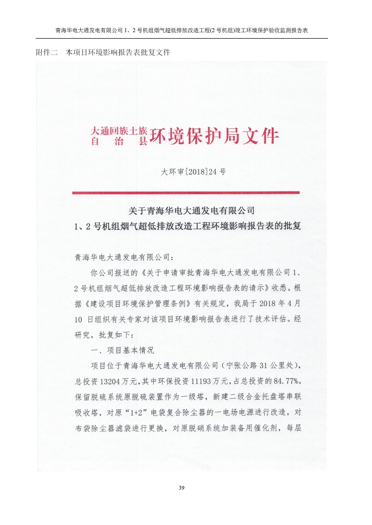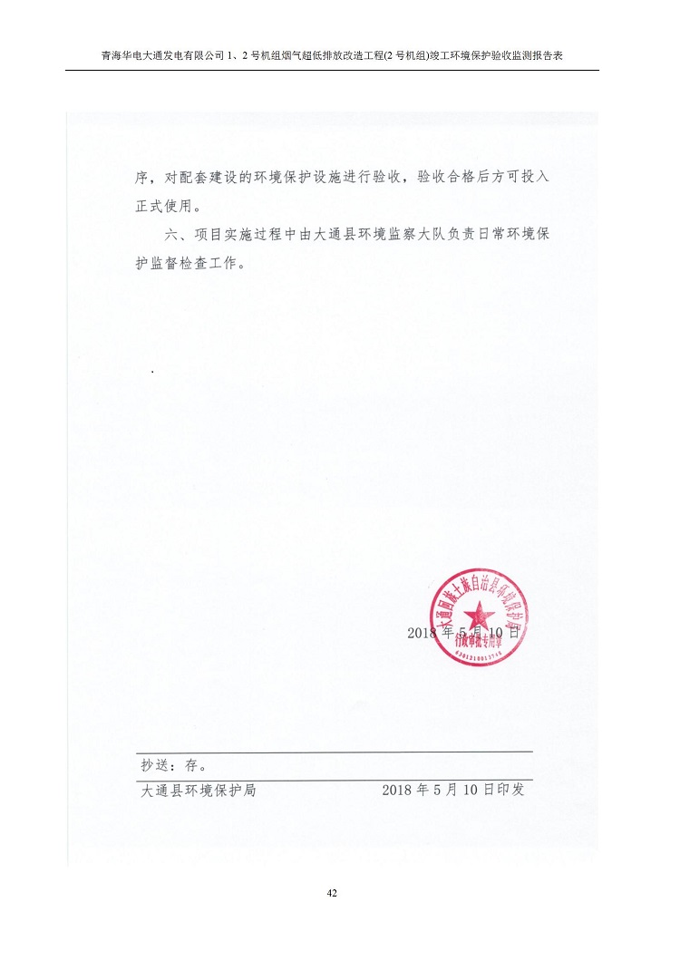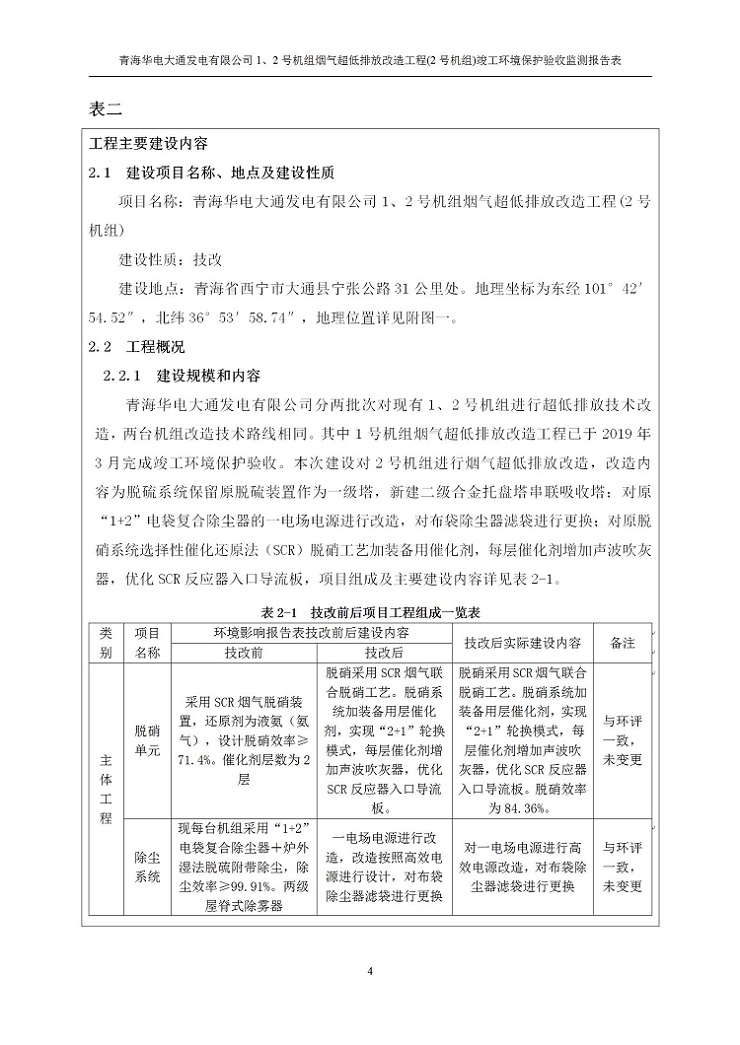 根據(jù)中華人民共和國國務(wù)院令第682號(hào)《國務(wù)院關(guān)于修改〈建設(shè)項(xiàng)目環(huán)境保護(hù)管理?xiàng)l例〉的決定》和《建設(shè)項(xiàng)目竣工環(huán)境保護(hù)驗(yàn)收暫行辦法》(國務(wù)院令682號(hào)),青海華電大通發(fā)電有限公司1、2號(hào)機(jī)組煙氣超低排放改造工程(2號(hào)機(jī)組) (包括竣工環(huán)境保護(hù)驗(yàn)收監(jiān)測(cè)報(bào)告表和驗(yàn)收意見)公示如下。 一、項(xiàng)目名稱:青海華電大通發(fā)電有限公司1、2號(hào)機(jī)組煙氣超低排放改造工程(2號(hào)機(jī)組) 竣工環(huán)境保護(hù)驗(yàn)收監(jiān)測(cè)報(bào)告表 二、地點(diǎn):青海省西寧市大通縣寧張公路31公里處 三、建設(shè)單位:青海華電大通發(fā)電有限公司 四、建設(shè)內(nèi)容:2號(hào)機(jī)組煙氣超低排放改造,2號(hào)機(jī)組改造內(nèi)容為脫硫系統(tǒng)保留原脫硫裝置作為一級(jí)塔,新建二級(jí)合金托盤塔串聯(lián)吸收塔;對(duì)原“1+2”電袋復(fù)合除塵器的一電場(chǎng)電源進(jìn)行改造,對(duì)布袋除塵器濾袋進(jìn)行更換;對(duì)原脫硝系統(tǒng)選擇性催化還原法(SCR)脫硝工藝加裝備用催化劑,每層催化劑增加聲波吹灰器,優(yōu)化SCR反應(yīng)器入口導(dǎo)流板。 五、聯(lián)系人:馬世敏 六、聯(lián)系電 話:0971-6515411 七、公示時(shí)間:二〇二〇年四月二十九日至二〇二〇年五月二十八日 公示期間,對(duì)上述公示內(nèi)容如有異議,請(qǐng)以書面形式反饋,個(gè)人須署真實(shí)姓名,單位須加蓋公章。