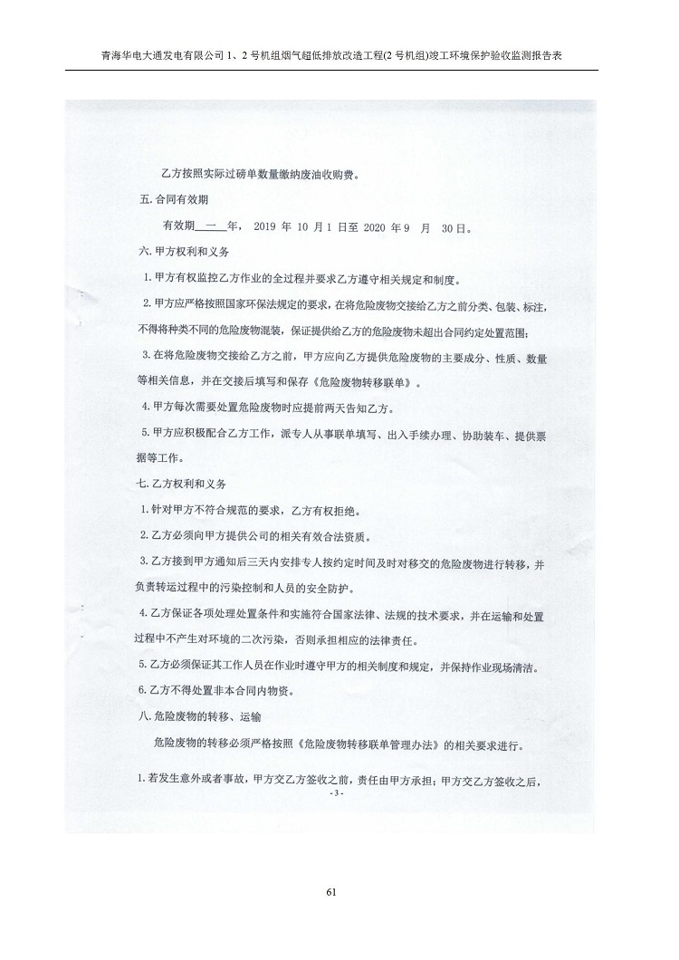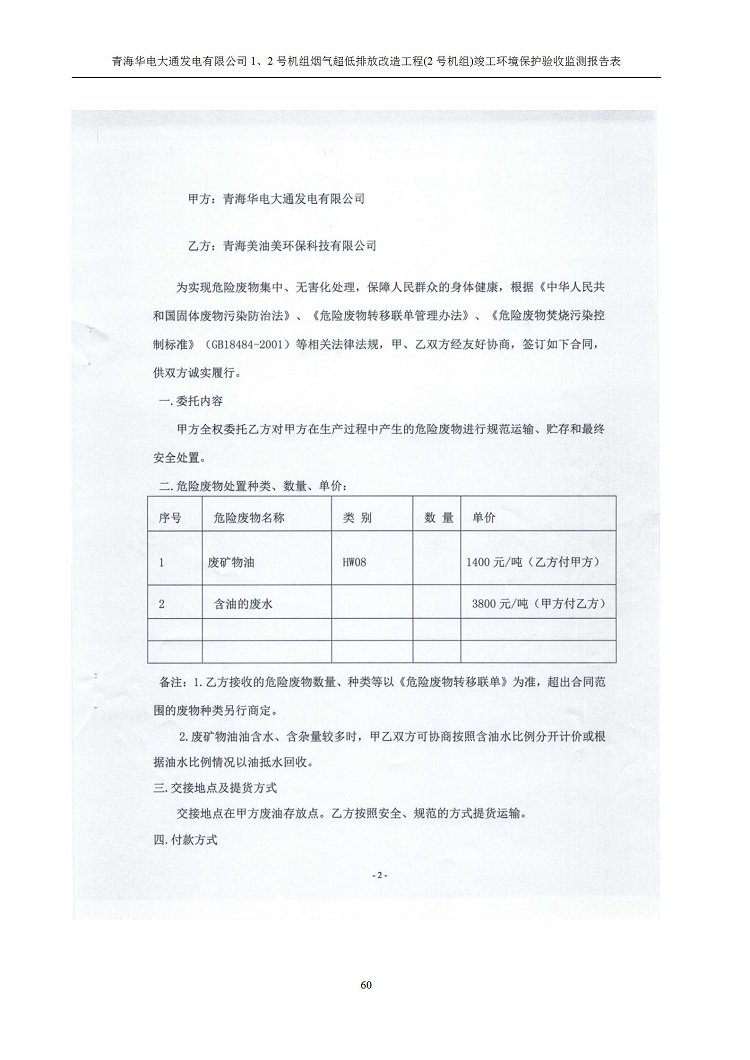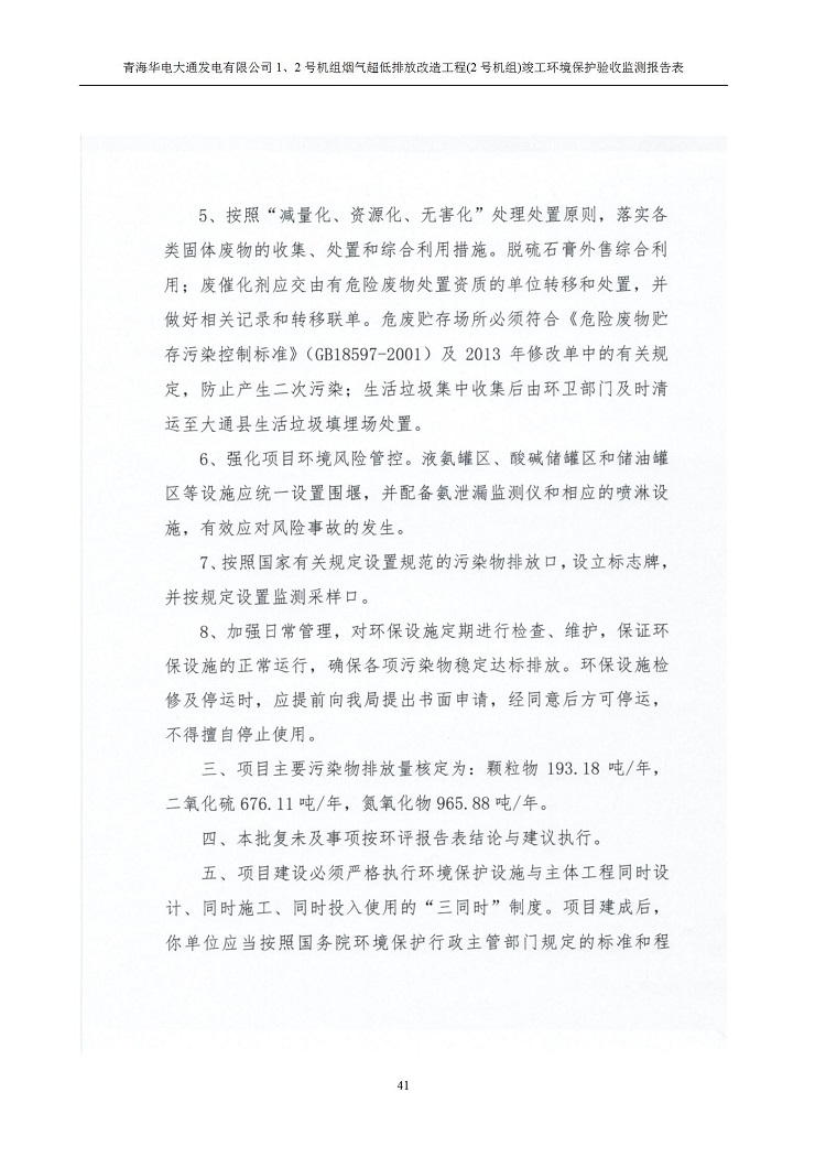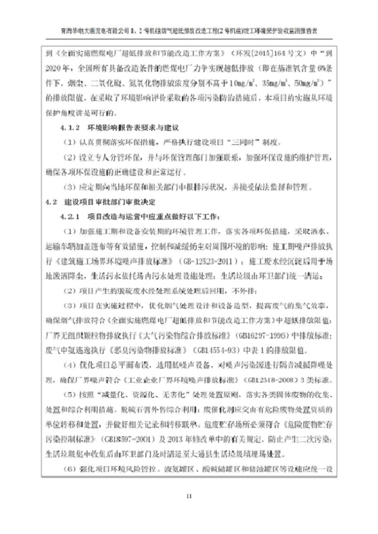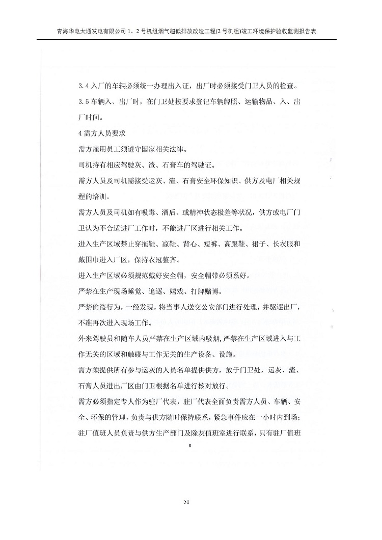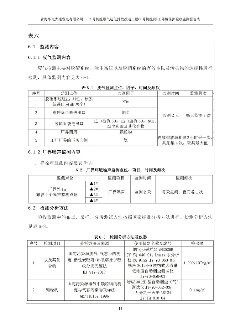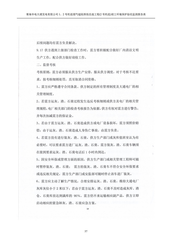 根據(jù)中華人民共和國國務(wù)院令第682號(hào)《國務(wù)院關(guān)于修改〈建設(shè)項(xiàng)目環(huán)境保護(hù)管理?xiàng)l例〉的決定》和《建設(shè)項(xiàng)目竣工環(huán)境保護(hù)驗(yàn)收暫行辦法》(國務(wù)院令682號(hào)),青海華電大通發(fā)電有限公司1、2號(hào)機(jī)組煙氣超低排放改造工程(2號(hào)機(jī)組) (包括竣工環(huán)境保護(hù)驗(yàn)收監(jiān)測(cè)報(bào)告表和驗(yàn)收意見)公示如下。 一、項(xiàng)目名稱:青海華電大通發(fā)電有限公司1、2號(hào)機(jī)組煙氣超低排放改造工程(2號(hào)機(jī)組) 竣工環(huán)境保護(hù)驗(yàn)收監(jiān)測(cè)報(bào)告表 二、地點(diǎn):青海省西寧市大通縣寧張公路31公里處 三、建設(shè)單位:青海華電大通發(fā)電有限公司 四、建設(shè)內(nèi)容:2號(hào)機(jī)組煙氣超低排放改造,2號(hào)機(jī)組改造內(nèi)容為脫硫系統(tǒng)保留原脫硫裝置作為一級(jí)塔,新建二級(jí)合金托盤塔串聯(lián)吸收塔;對(duì)原“1+2”電袋復(fù)合除塵器的一電場(chǎng)電源進(jìn)行改造,對(duì)布袋除塵器濾袋進(jìn)行更換;對(duì)原脫硝系統(tǒng)選擇性催化還原法(SCR)脫硝工藝加裝備用催化劑,每層催化劑增加聲波吹灰器,優(yōu)化SCR反應(yīng)器入口導(dǎo)流板。 五、聯(lián)系人:馬世敏 六、聯(lián)系電 話:0971-6515411 七、公示時(shí)間:二〇二〇年四月二十九日至二〇二〇年五月二十八日 公示期間,對(duì)上述公示內(nèi)容如有異議,請(qǐng)以書面形式反饋,個(gè)人須署真實(shí)姓名,單位須加蓋公章。
