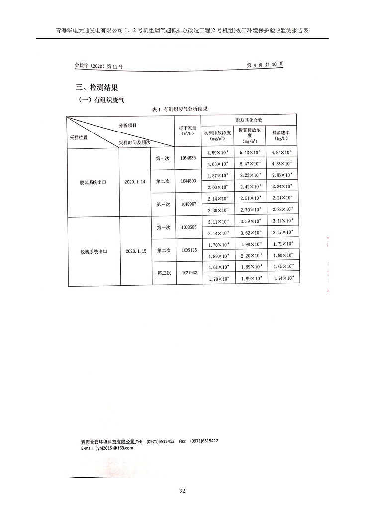 青海華電大通發(fā)電有限公司1、2號(hào)機(jī)組煙氣超低排放改造工程(2號(hào)機(jī)組) 竣工環(huán)境保護(hù)驗(yàn)收監(jiān)測(cè)報(bào)告表公示發(fā)布日期:(2020-4-29) 點(diǎn)擊次數(shù):2734 |