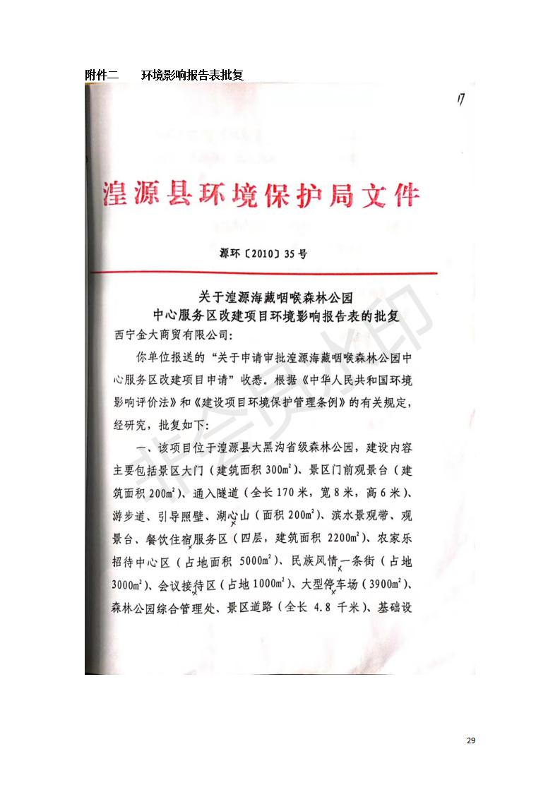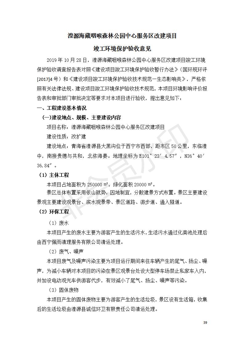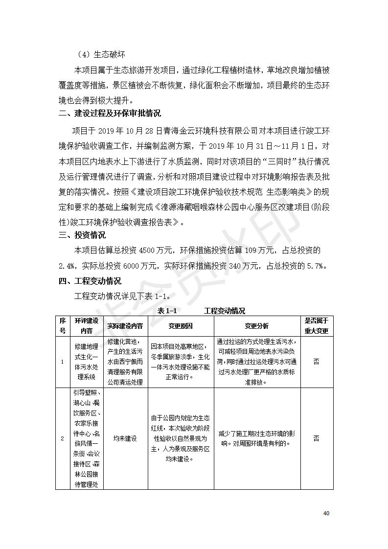 湟源海藏咽喉森林公園中心服務(wù)區(qū)改建項(xiàng)目(階段性)竣工環(huán)境保護(hù)驗(yàn)收調(diào)查表發(fā)布日期:(2020-4-29) 點(diǎn)擊次數(shù):3261 |