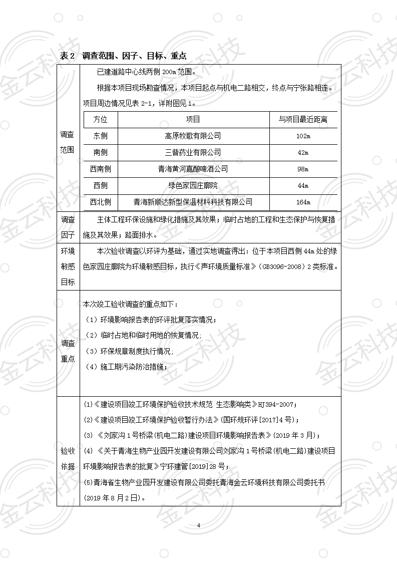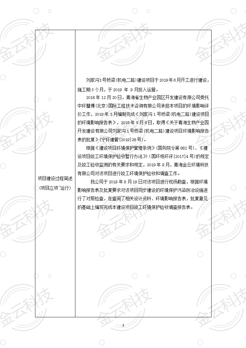 根據(jù)中華人民共和國(guó)國(guó)務(wù)院令第682號(hào)《國(guó)務(wù)院關(guān)于修改〈建設(shè)項(xiàng)目環(huán)境保護(hù)管理?xiàng)l例〉的決定》和《建設(shè)項(xiàng)目竣工環(huán)境保護(hù)驗(yàn)收暫行辦法》(國(guó)務(wù)院令682號(hào)),劉家溝1號(hào)橋梁(機(jī)電二路)建設(shè)項(xiàng)目竣工環(huán)境保護(hù)驗(yàn)收調(diào)查表,(包括竣工環(huán)境保護(hù)驗(yàn)收調(diào)查表和驗(yàn)收意見)公示如下。 一、項(xiàng)目名稱:劉家溝1號(hào)橋梁(機(jī)電二路)建設(shè)項(xiàng)目竣工環(huán)境保護(hù)驗(yàn)收調(diào)查表 二、地點(diǎn):青海省西寧市城北區(qū)生物園區(qū) 三、建設(shè)單位:青海生物產(chǎn)業(yè)園開發(fā)建設(shè)有限公司 四、建設(shè)內(nèi)容:本項(xiàng)目主要建設(shè)內(nèi)容為橋梁工程、接線路基等工程。項(xiàng)目南北走向,北起機(jī)電二路,南至寧張路,項(xiàng)目全長(zhǎng)150m. 五、聯(lián)系人:張工 六、聯(lián)系電 話:0971-6515411 七、公示時(shí)間:二〇二〇年六月二日至二〇二〇年六月三十日 公示期間,對(duì)上述公示內(nèi)容如有異議,請(qǐng)以書面形式反饋,個(gè)人須署真實(shí)姓名,單位須加蓋公章。 |